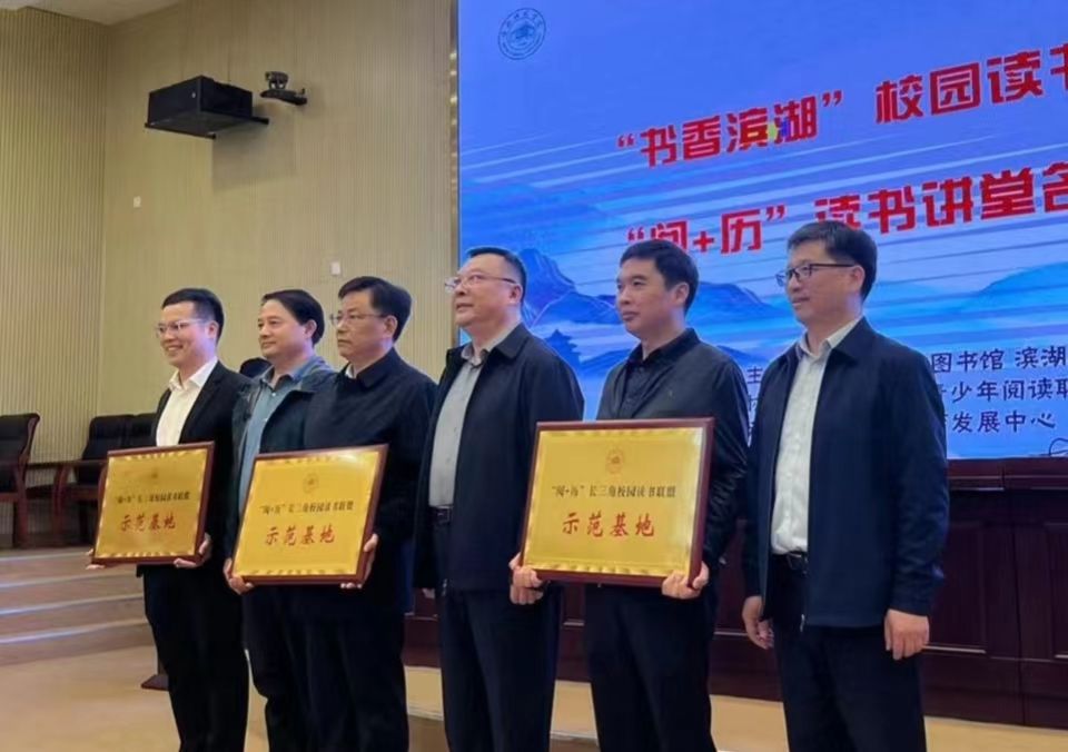 启动仪式上,徐成钢、华银峰、常树宝向巢湖市炯炀高中、黄麓师范学校、安徽省掇英轩书画用品公司等阅读共同体单位授予了“阅+历”长三角校园读书联盟示范基地的牌匾。安徽万品图书经营有限公司为我校电子信息与集成电路学院、美术与设计学院“一站式学生书香社区”捐赠了图书。音乐学院江楠老师及团队、青轻行走读书会张春老师和文学院的同学们现场通过朗诵等艺术形式演绎了《赤阑桥》《岳阳楼记》《一路书香,一生阳光》等经典文学作品。