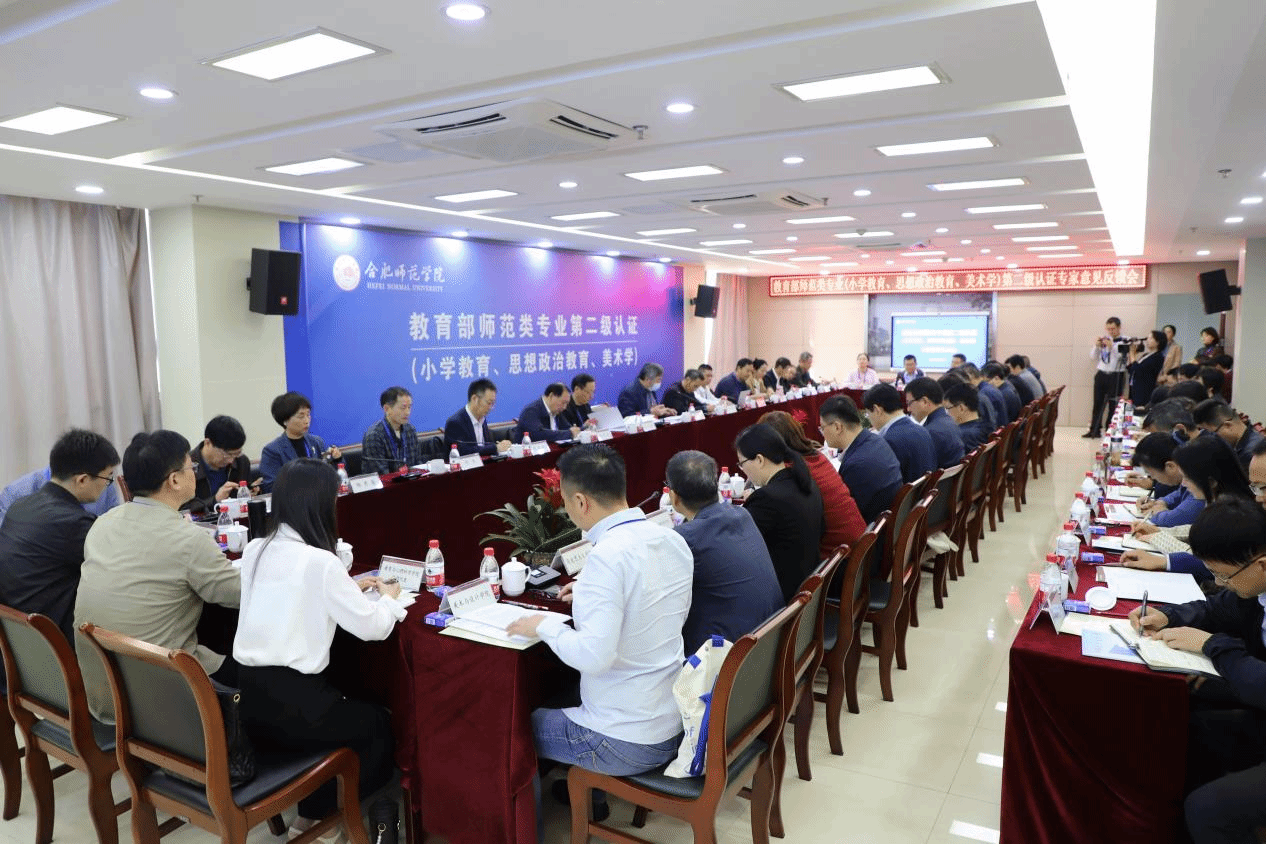 10月25日上午,学院在锦绣校区行知楼2011会议室召开小学教育、思想政治教育、美术学师范专业认证专家意见反馈会。专家组全体成员,安徽省教育厅高等教育处副处长朱永国,我院党委书记徐成钢,党委副书记、院长方东玲,党委委员、纪委书记、监察专员徐文林,党委委员、副院长华银峰、周端明,相关职能部门、督导团负责人,相关二级学院负责人及骨干教师参加了会议。会议由联合认证专家组组长兼小学教育专业专家组组长江苏师范大学钱进教授主持。