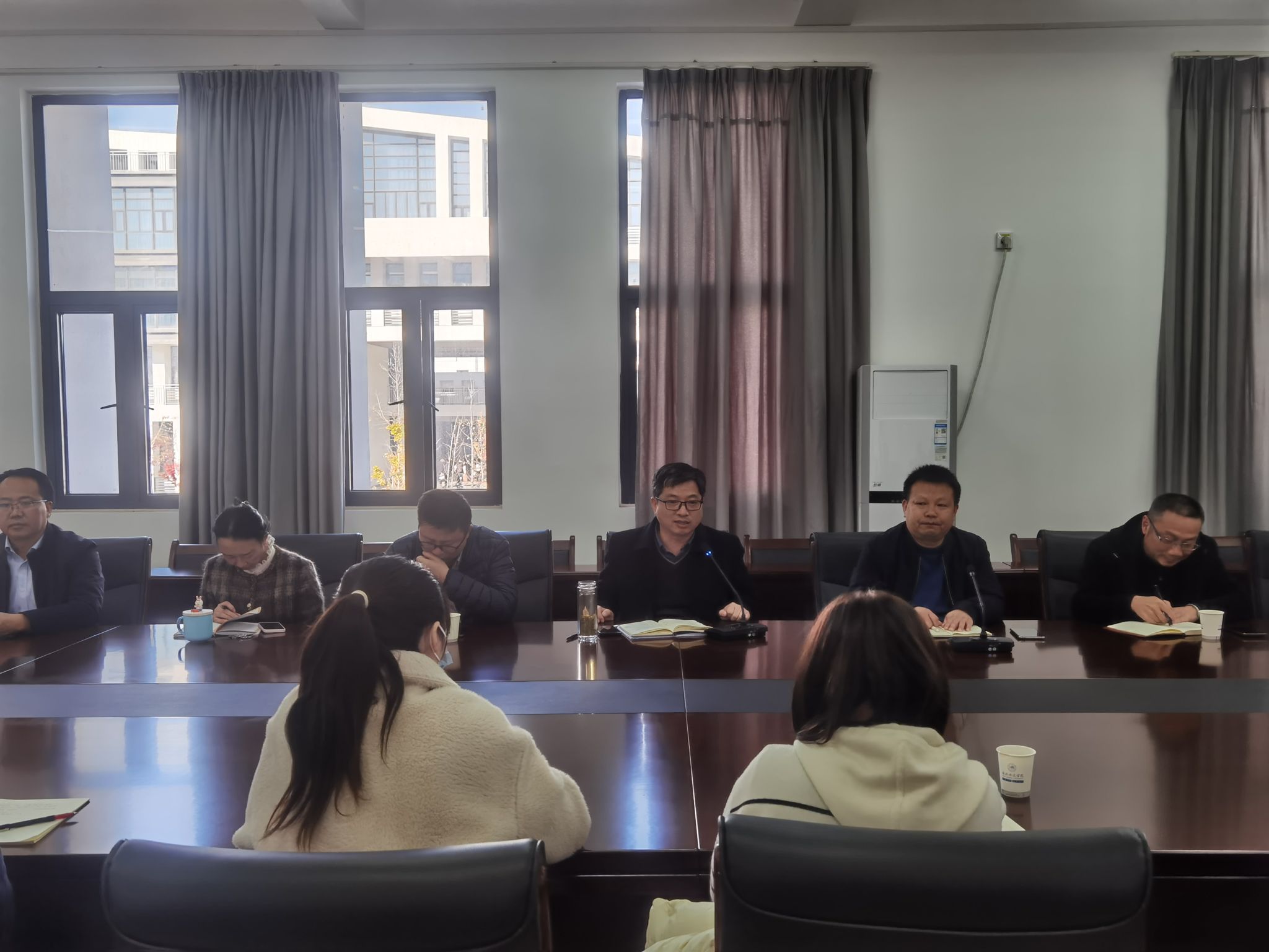 12月7日上午,学院在滨湖校区会议室二召开滨湖校区管理委员会工作例会。院党委委员、副院长、滨湖校区管理委员会主任华银峰出席会议。人事处、教务处、学生工作处、后勤处(基建办)、保卫处、资产管理处、信息化管理处、实验室建设与管理中心等管理委员会成员单位主要负责人、入驻滨湖校区二级学院带班领导、辅导员老师参加会议。会议由滨湖校区管理委员会办公室主任、滨湖办主任周荣主持。