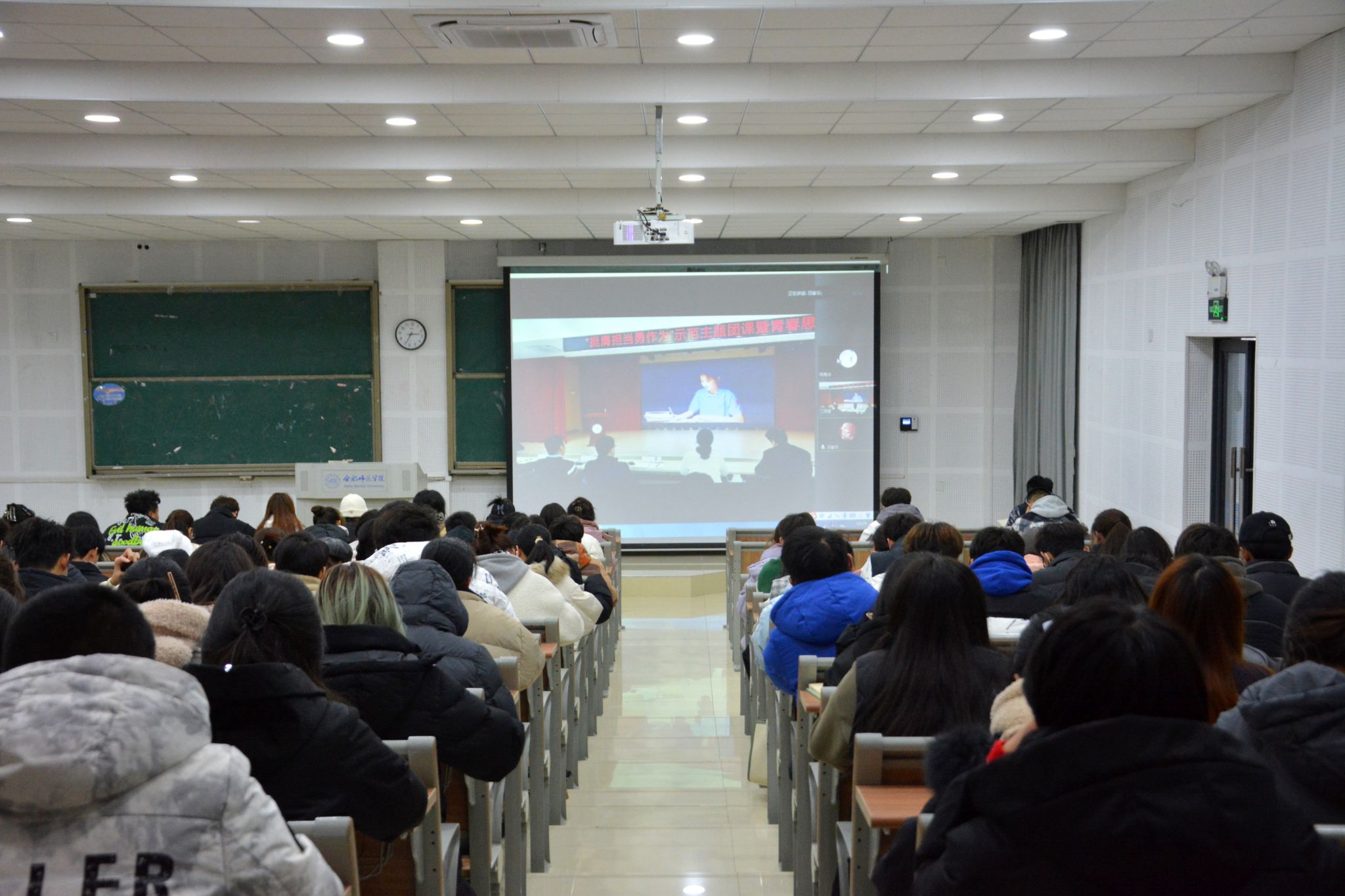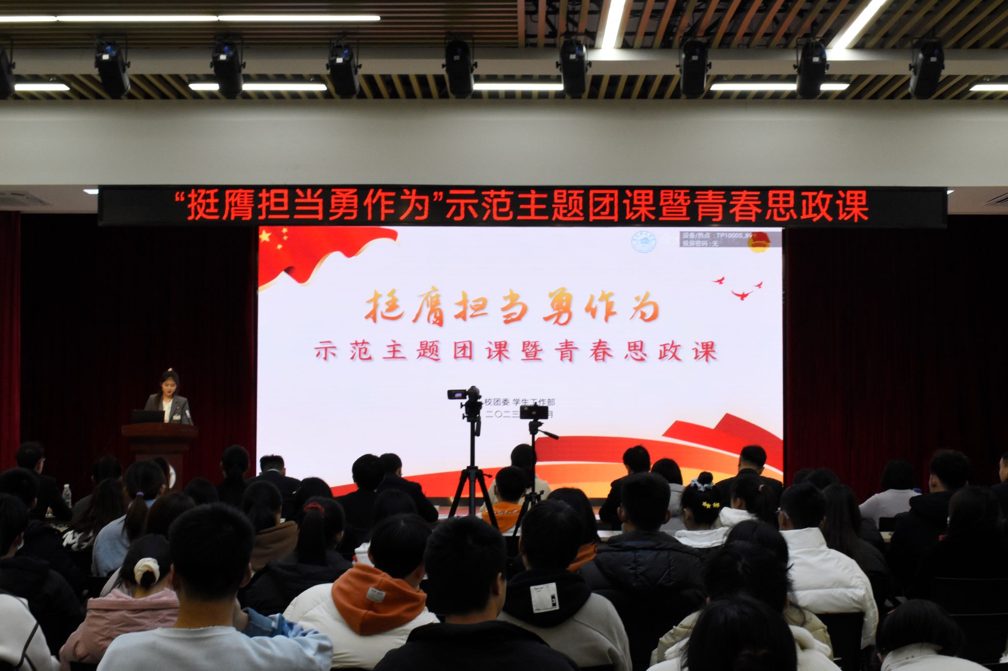 12月13日下午,学院“挺膺担当勇作为”示范主题团课暨青春思政课于锦绣校区大学生活动中心举行,滨湖校区分会场设在博学楼D101教室。团省委有关领导到场指导,院团委全体人员、各二级学院团委书记、第十四期青年马克思主义者培养工程和第四期青春学习营全体学员、2023级班级团支部书记300余人参加活动。