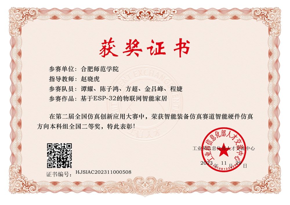 近日,由工业和信息化部人才交流中心主办的第二届SIAC(全国仿真创新应用大赛)全国总决赛结果正式揭晓。我校电子信息与集成电路学院赵晓虎老师指导,电子信息工程和通信工程专业谭耀、陈子鸿,方超、金吕峰和程婕5位同学组成的团队一路过关斩将,成功闯入“智能装备仿真赛道”赛道总决赛并荣获二等奖。
