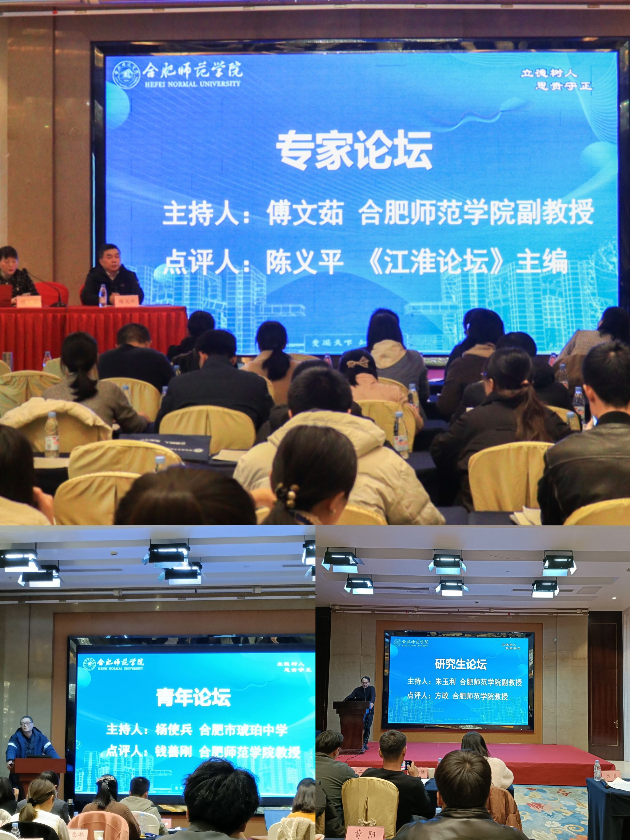 近70位与会人员分别在专家论坛、青年学者论坛和研究生论坛上,围绕思政课一体化建设、课程思政、家校社协调育人、德育与心育融通等议题,展开热烈交流与思想碰撞。论坛点评阶段,安徽省社科院党组成员、《江淮论坛》主编陈义平教授在点评中就大中小学思想政治教育一体化的研究,提出可围绕“四个有”即内容上有机整合、价值上有的链接、机制上有效衔接、方法上有序推进来提炼论文主题,可从“三个一”即瞄准一个研究对象、找到一个切入口、搭建一个分析框架来撰写高水平学术论文,对与会者启发很大。