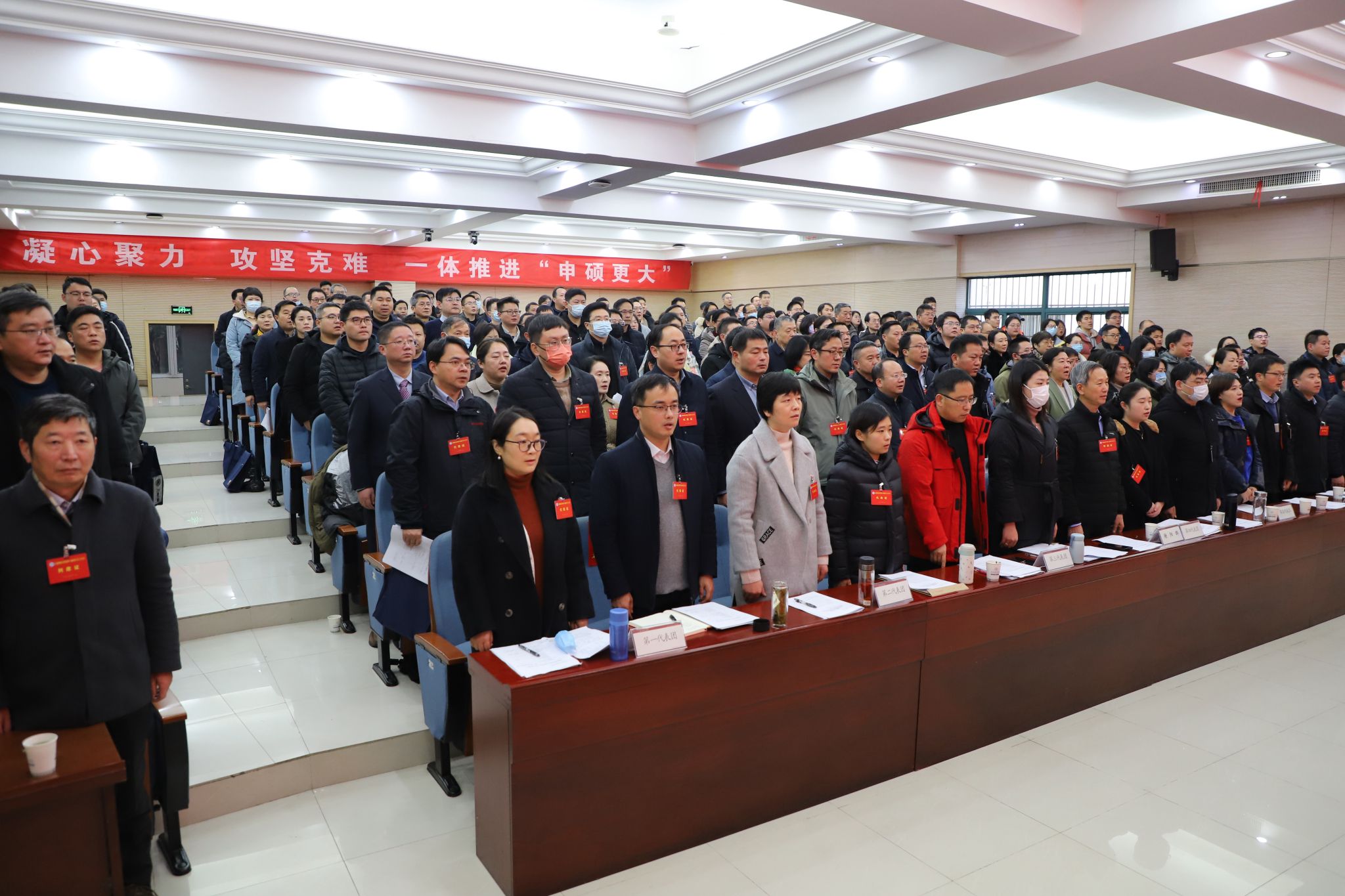 徐成钢强调,当前学校正处于改革发展的关键期攻坚期,既面临难得机遇,也面临诸多挑战,只要我们心往一处想、劲往一处使,只要我们每个领域、每个单位、每位个人,都能把本职工作做到位、做出色、做出彩,我们的目标就一定能够实现。全体师生员工要以习近平新时代中国特色社会主义思想为指导,以更加昂扬的主人翁姿态,团结拼搏、改革创新,抢抓机遇、迎难而上,全面完成党代会年会和教代会工代会提出的各项任务,为一体推进“申硕更大”而努力奋斗!