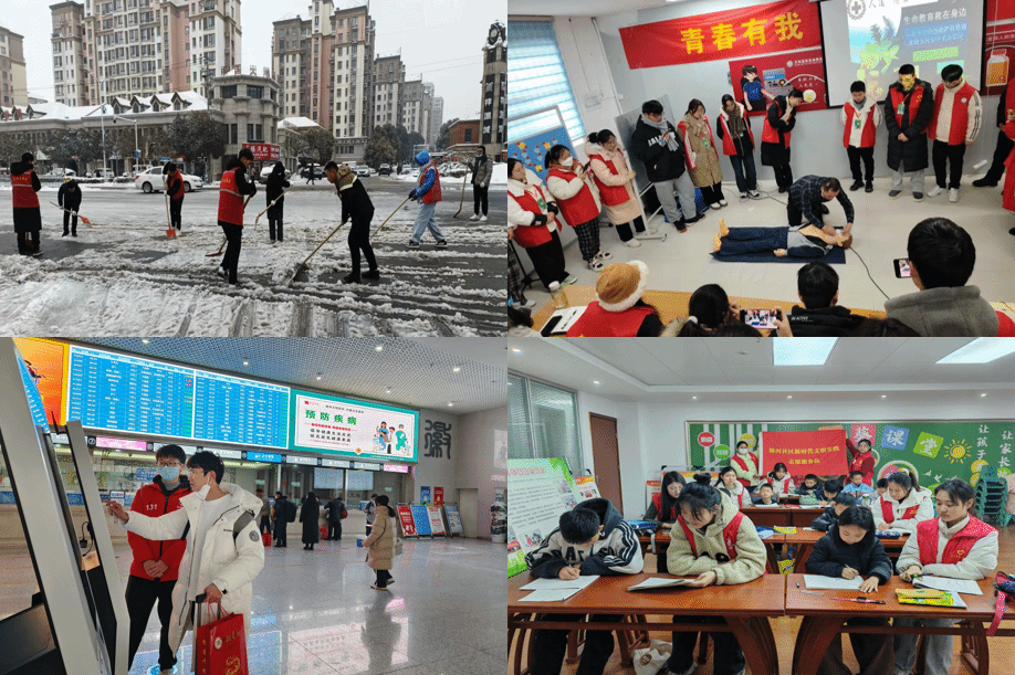 经济与管理学院王晨鑫向合肥市长丰县滁河社区报到,为社区儿童提供课业辅导、情感陪伴、兴趣拓展等服务。马克思主义学院汪心月在宣城市郎溪县郎溪县图书馆朗读吧参与公益实践,从事借还书登记、图书信息维护等工作。体育科学学院罗娇娇在宿州市灵璧县滨河社区旁十字路口,参与指挥行人注意交通信号灯并提醒电动自行车行人戴头盔。电子信息与集成电路学院刘林旗回到家乡湖南衡阳衡东县草市镇灵山社区,与数百位大学生开展送法下乡、禁毒宣传、青春护蕾等活动。马克思主义学院俞舒畅向家乡六安市霍山县科技馆报到,参与维持秩序和科普教育等志愿工作。物理与材料工程学院赵国华在宿州市埇桥区雪峰社区作为青年志愿者参与冰雪安全教育宣传活动、清扫道路积雪。计算机与人工智能学院马驰响应团濉溪县委号召,参加公共交通路段扫雪除冰志愿服务活动。教育与心理科学学院王子悦返回家乡界首市靳寨乡开展社会实践活动,面向老年人群体开设“老年课堂”,提供艺术课程、情感陪伴等服务。美术与设计学院杨晨曦在广德市桐纳街道红色驿站参加寒假公益班,与小朋友们一起做汤圆、作剪纸,并赠送给环卫工人。外国语学院张家宁在临沂市红十字会参与“科技小达人,救在身边”宣传活动,为市人民科普相关应急救护知识,提高当地群众的急救意识及能力。