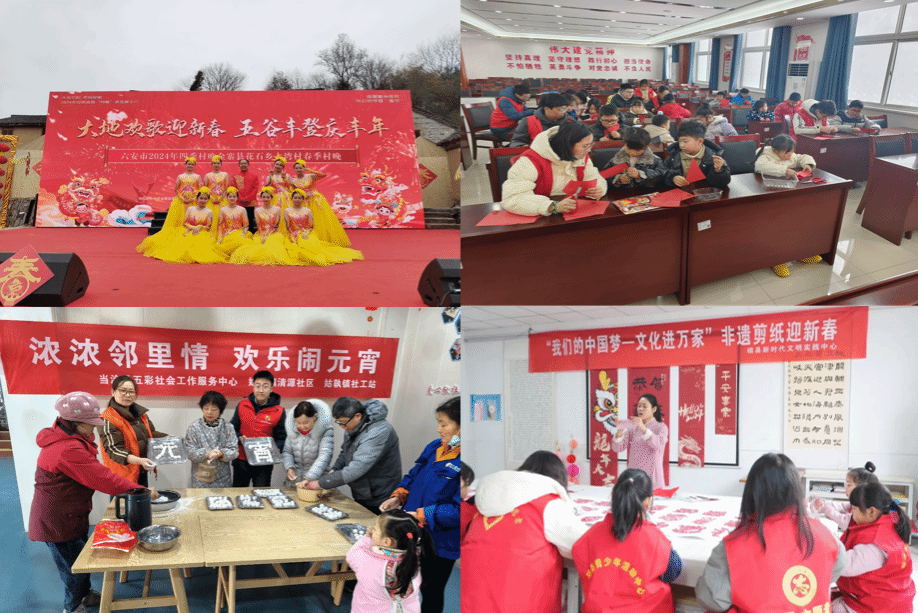 周天赐、徐文清、刘婷婷、陈晓雅、曹洹瑛、卢雪、徐蓥滢、陈郡冉等同学,赴亳州南站、合肥南站、阜南县城东客运站、六安火车站、临汾西站、滁州北站、芜湖火车站、太和北站等客运中心,为春运期间返乡旅客提供指路、帮拿行李、查询车次、维护秩序服务。音乐学院徐玲儿团队登上金寨县花石乡春季“村晚”大湾村农民大舞台,用自编、自导、自演的文艺节目庆祝龙年新春佳节。电子信息与集成电路学院吴学波向当涂县五彩社会服务中心报到,在清源社区日间照料中心同志愿者布置活动场所、浓郁春节氛围,举办猜灯谜、包元宵等活动,并为老人送去春节慰问品。数学与统计学院汝锦远积极参加利辛县好人协会组织的“2024暖冬行动之春节送温暖”志愿活动,为孤寡老人和贫困家庭送去棉衣、棉被、营养品和现金。计算机与人工智能学院何家燕同学向霍山县上土市镇龙金村报到,在春节前夕开展了为期一个月的环境整治、垃圾清理、反诈宣传、留守老人关怀等志愿服务。教育与心理科学学院朱筱妍参加“烟火徽州年,寻美青春Young”活动,换好汉服后前往西溪南,并在工作人员引导下体验制作鱼灯、花灯,在舞龙和烟花秀中感悟民俗文化的独特魅力。教育与心理科学学院段明惠参加家乡河北省廊坊市三河市的大学生志愿者舞龙活动,并在元宵节进行演出,舞龙演出承载着对新春的祝福以及美好生活的向往和追求,受到观众的热烈欢迎。物理与材料工程学院郝锦辉参加宣城市泾县琴溪镇下乡送祝福活动,向赠送村民书法字画,并一同包饺子庆祝春节、表演击鼓迎春。