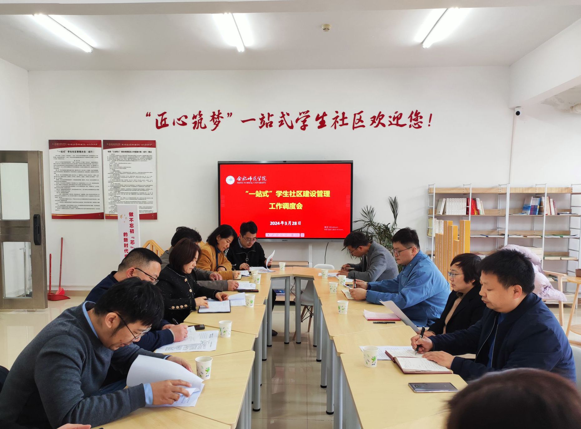 3月28日上午,学院在滨湖校区5号学生公寓“匠心筑梦”学生社区工作室召开“一站式”学生社区建设管理工作调度会。院党委副书记梁立昌,滨湖校区综合管理办公室、学生工作部及有关二级学院负责人、辅导员参加会议。