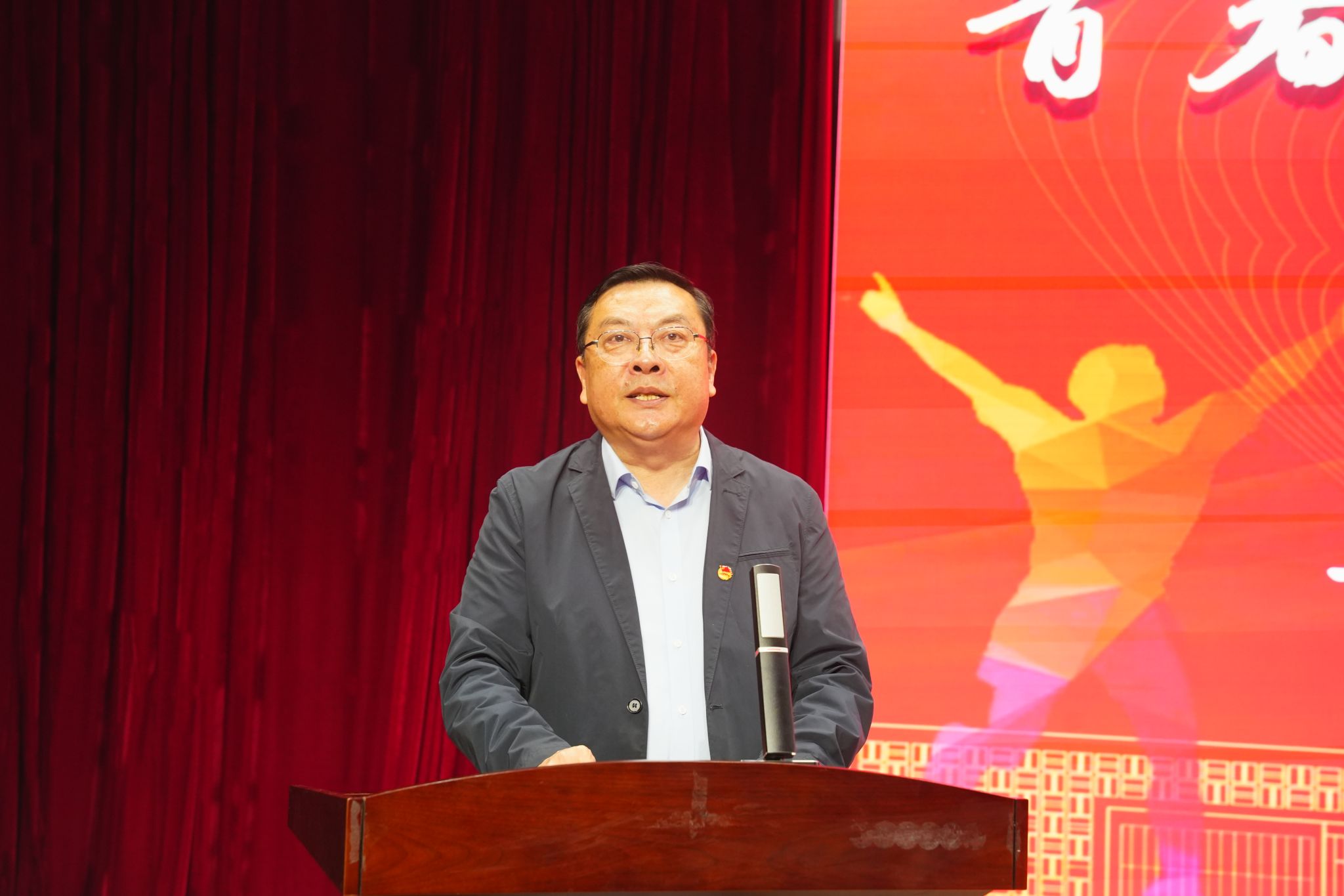 徐成钢首先致辞,代表学院党委向全校广大团员青年朋友们致以亲切的问候,向受到表彰的先进集体和个人表示热烈的祝贺。他充分肯定了学院各级团组织过去一年在院党委的坚强领导下在取得的显著成绩。他要求全院广大团员青年深入学习贯彻习近平总书记今年五四青年节对全国广大青年寄语精神,并提出三点殷切希望:一要践行初心使命,做紧跟党走的模范践行者。 秉持“党有号召,团有行动”的优良传统,坚定“永远跟党走”的信心决心,深入学习领会习近平新时代中国特色社会主义思想,在服务党和国家中心工作中展现新作为,努力成长为堪当民族复兴重任的时代新人;二要强化知行合一,做五四精神的继承发扬者。继承和发扬“爱国、进步、民主、科学”的五四精神,学思践悟,知行合一,把自己的“小我”融入祖国的“大我”中,将个人理想融入党和国家事业中,与学院高质量发展同频共振,让五四精神在新时代焕发光彩;三要勇担时代重任,做挺膺担当的不懈奋斗者。珍惜韶华,锤炼本领,在担当中历练、奋斗中成长,在学院高质量发展实践中,在强国建设、民族复兴伟业中彰显青春风采。他要求全院各级党组织和相关部门要坚持党建带团建,围绕做“青年朋友的知心人、青年工作的热心人、青年群众的引路人”要求,一如既往地关心和支持共青团工作,在关爱青年进步、服务青年成长中深化“三全育人”、推动“五育并举”。各级团组织要把牢新时代共青团工作主题主线,认真履行引领凝聚青年、组织动员青年、联系服务青年职责使命,不断提升组织力、引领力、服务力和大局贡献度,为学院一体推进“申硕更大”贡献青春智慧。