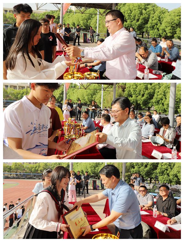 在颁奖环节,党委委员、副院长周端明为甲组团体总分获奖代表队、教工团体总分获奖代表队颁奖。党委委员、组织部部长赵帮恚为甲组男子团体总分获奖代表队、乙组团体总分获奖代表队颁奖。党委委员、宣传部部长、统战部部长常树宝为甲组女子团体总分获奖代表队、体育道德风尚奖获奖代表队颁奖。
