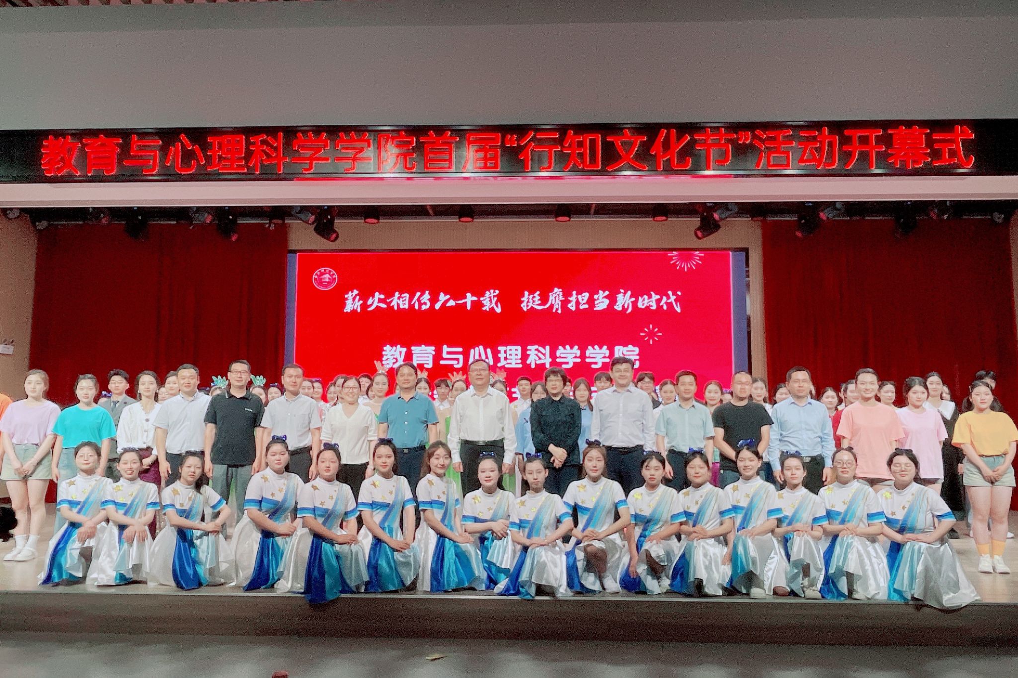 为深入贯彻落实习近平总书记关于青年工作的重要思想,引导广大青年大学生德智体美劳全面发展,5月22日下午,教育与心理科学学院在锦绣校区大学生活动中心举行“薪火相传六十载 挺膺担当新时代”首届“行知文化节”活动开幕式。院党委书记徐成钢,院党委副书记、院长方东玲,院党委委员、宣传部部长、统战部部长常树宝及教务处处长钱立青,党政办主任朱玉国、副主任吴晓星等出席开幕式。教育与心理科学学院党政领导班子、全体教职工以及300余名学生代表参加活动。