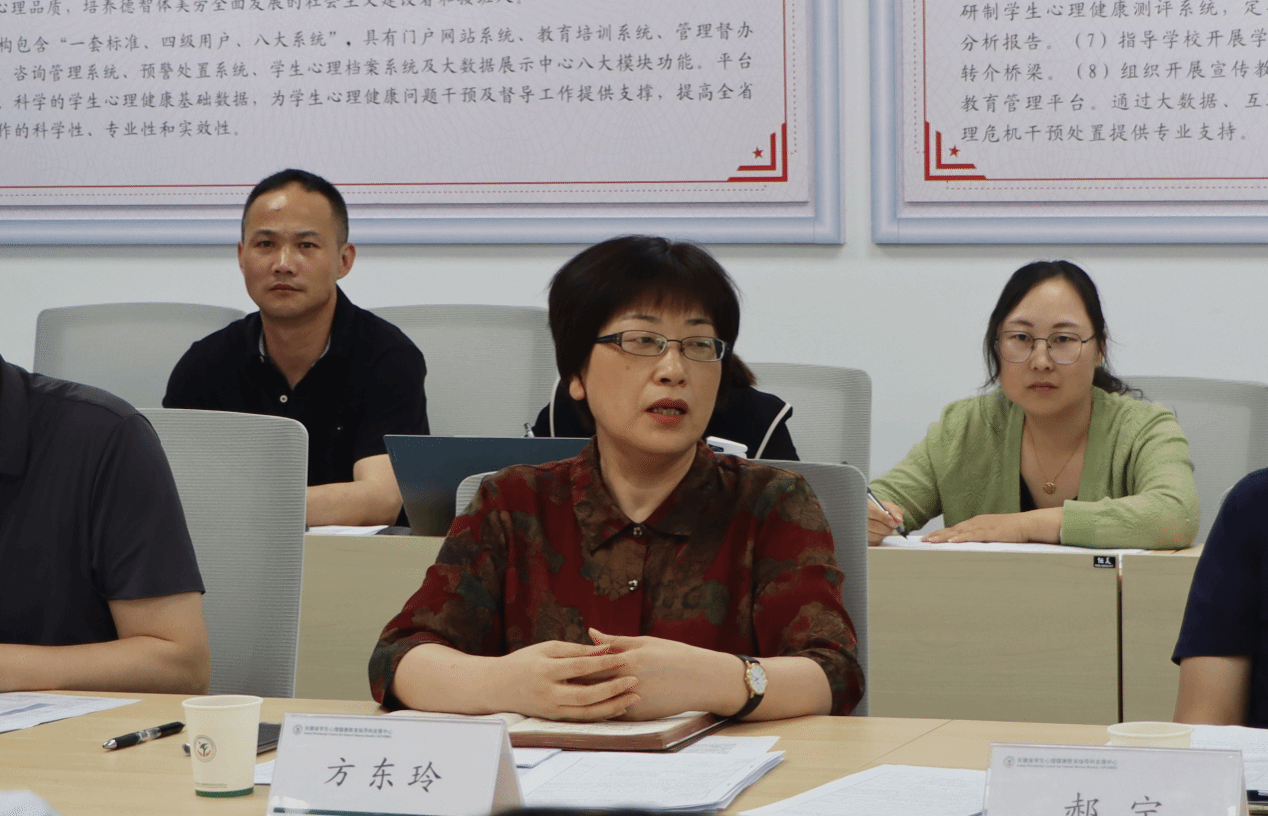 教育与心理科学学院副院长胡哲汇报“应用心理”学科建设和学位点申报准备情况;心理系主任黄凤介绍安徽省学生心理健康教育管理平台建设基本情况;发展规划处处长李大创和研究生处处长董华泽针对学科建设和硕士点建设分别进行政策解读与指导。