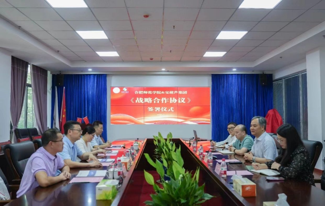 7月4日下午,学院与安徽宝葫芦信息科技集团股份有限公司(宝葫芦集团)举行战略合作签约和大学生教育实践基地揭牌仪式。宝葫芦集团董事长、总裁孙连峰,党支部书记、副总裁程庆乐,技术副总裁吕玉娟,心理学工程师朱智豪,388vip太阳集团学术副院长郝宁,教育与心理科学学院党委书记董萍、副院长胡哲,科研处刘健教授等参加了签约仪式。孙连峰主持仪式。