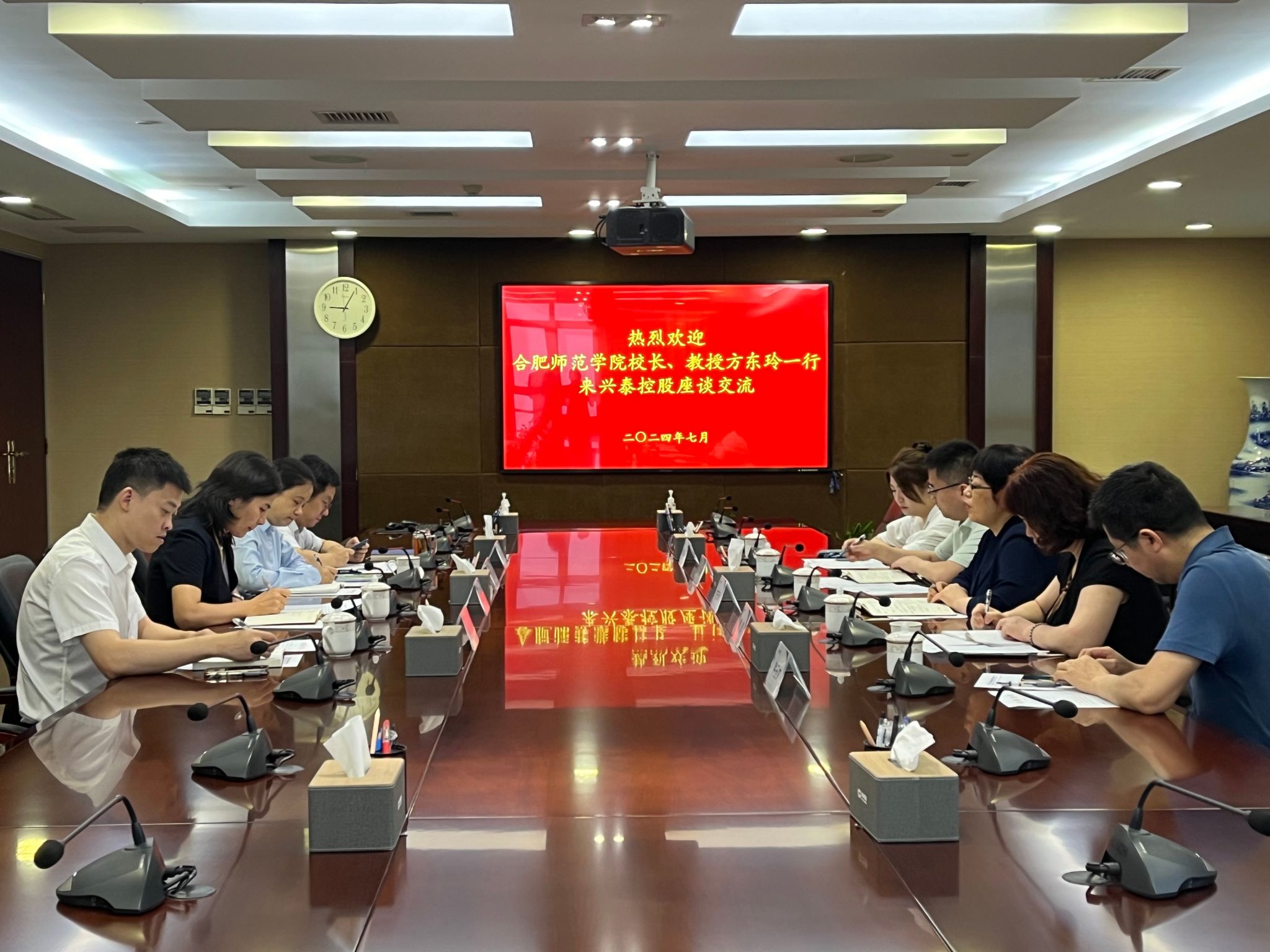7月11日,院党委副书记、院长方东玲带队到合肥兴泰金融控股(集团)有限公司调研,科研处、经济与管理学院等单位负责人参加调研交流。合肥兴泰金融控股(集团)有限公司党委书记、董事长郑晓静热情接待了方东玲一行,集团人力资源部、金融研究所、办公室负责人参加交流。