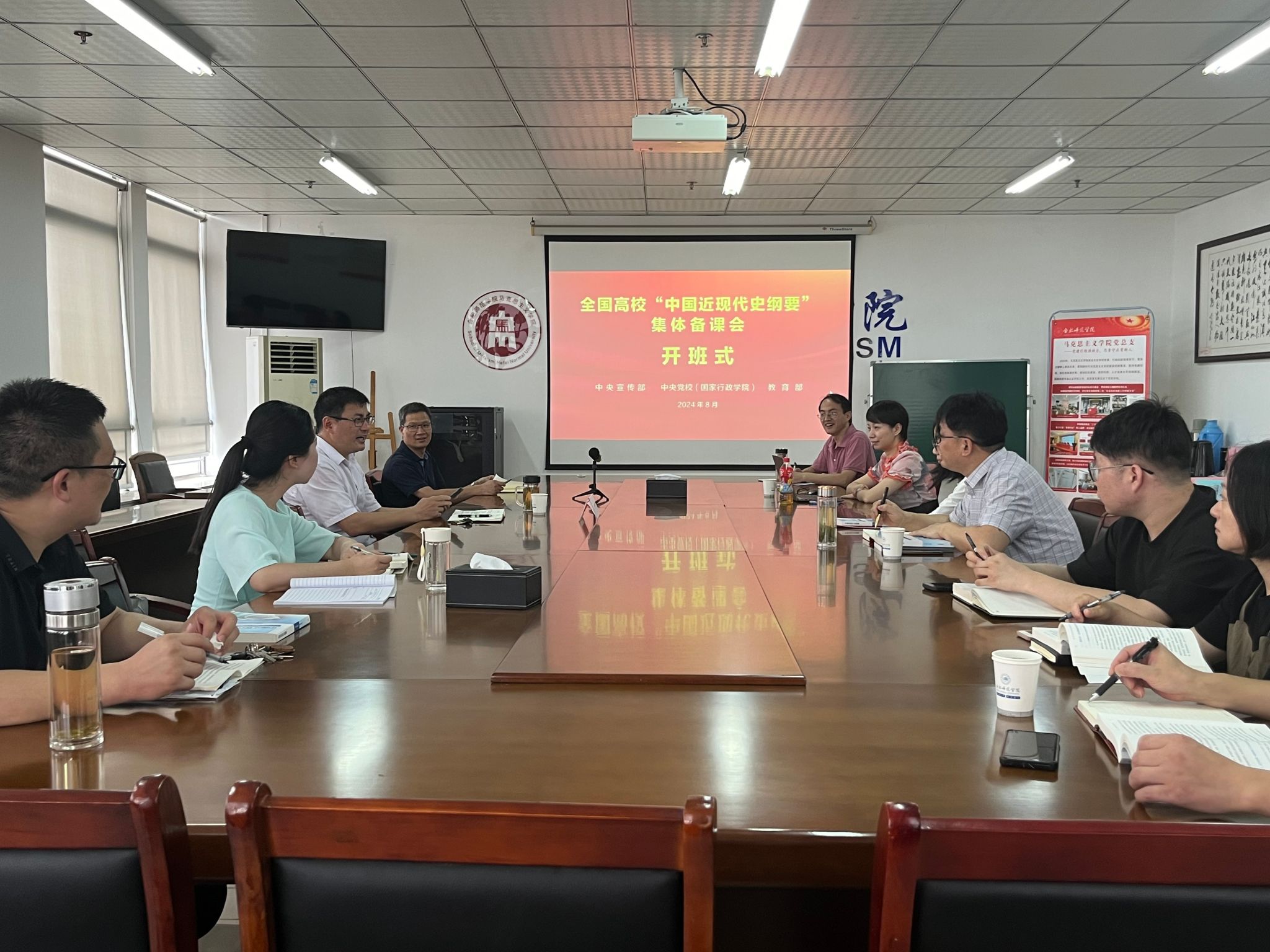 8月26日至30日,为期5天的全国高校“中国近现代史纲要”集体备课会在中央党校举行,马克思主义学院“中国近现代史纲要”教研室全体老师以线上方式,在388vip太阳集团分课堂全程参与备课会。党委委员、副院长周端明,马克思主义学院党政领导班子成员出席分课堂开班式。
