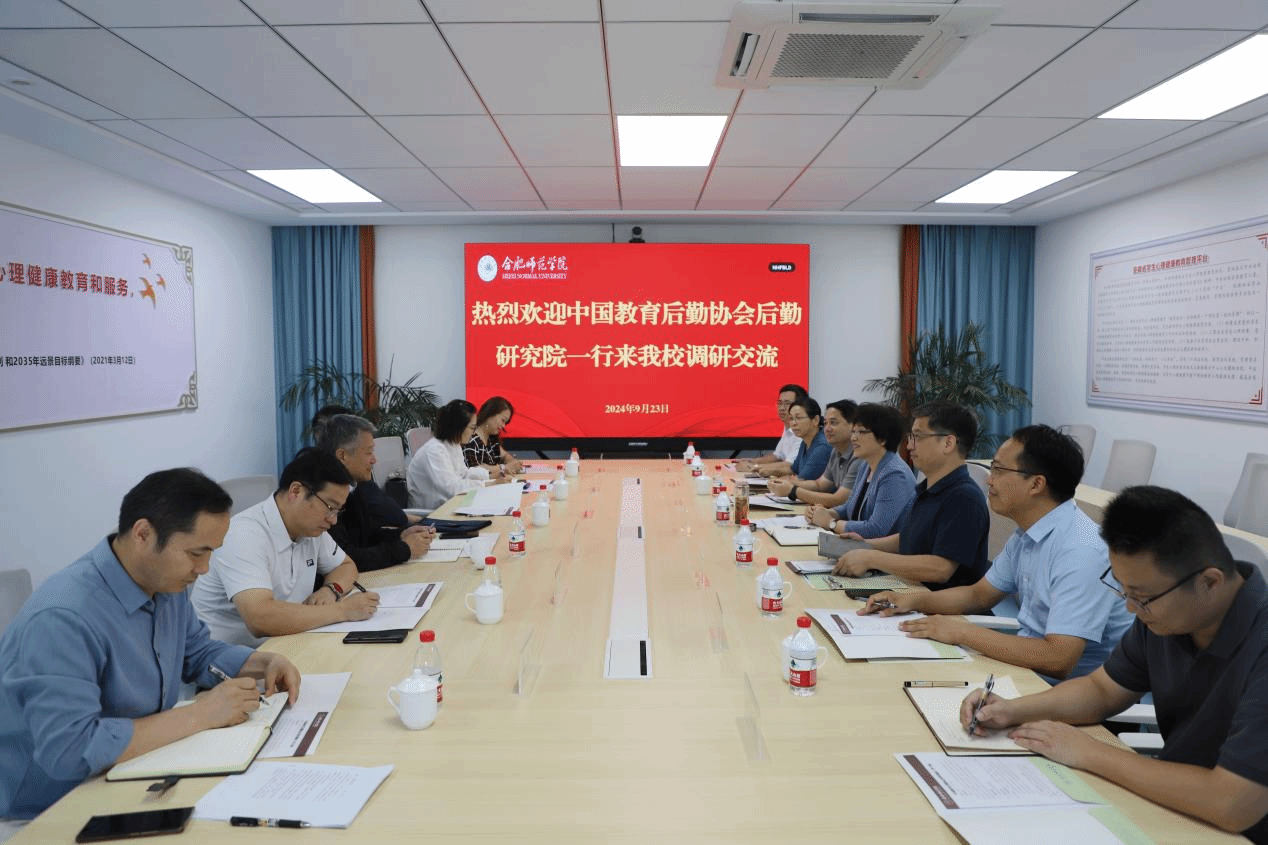 9月23日上午,中国教育后勤协会常务副会长兼秘书长、后勤研究院院长牛维麟一行来院调研。安徽省教育厅(中共安徽省委教育工委)一级巡视员解平,安徽省教育厅高校后勤管理服务中心副主任兼机关服务中心副主任潘鸿声等陪同调研。院党委副书记、院长方东玲,党委委员、副院长华银峰,学院党政办公室、宣传部、统战部、后勤处(基建办)、信息化管理处、资产管理处相关负责同志参加调研。