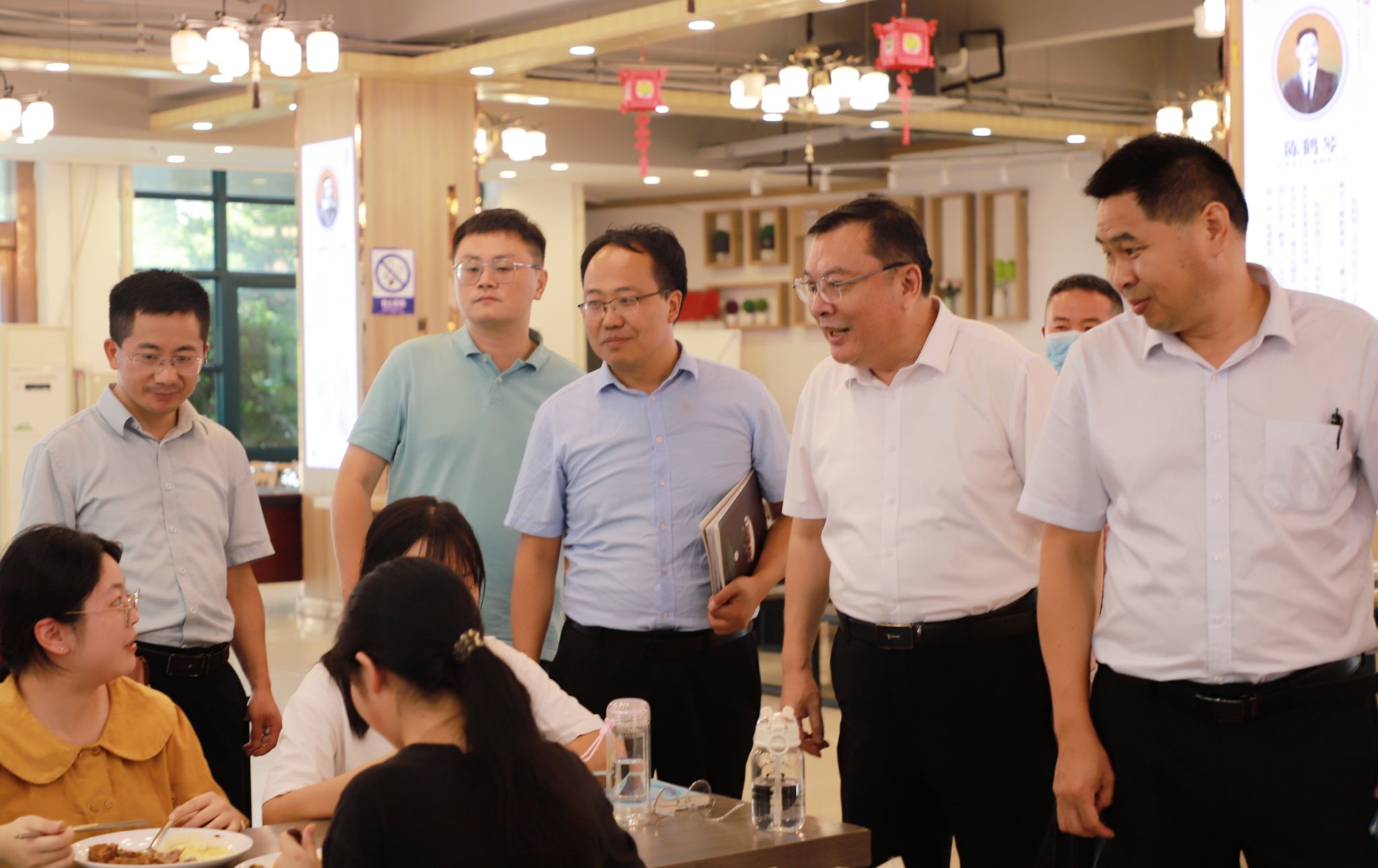 院党委书记徐成钢,院党委委员、纪委书记、监察专员徐文林等一行先后实地查看了锦绣校区监控室、门卫岗亭、食堂、学生宿舍消防通道等场所,与值班值守教职员工亲切交谈,详细了解国庆假期安全保卫、后勤保障、消防安全、校园环境与卫生等情况,对他们的辛勤工作表示肯定,嘱咐大家劳逸结合、保重身体,并向他们致以节日的问候和祝福。走访慰问中,徐成钢强调,要始终保持“时时放心不下”的责任感和“睁眼睡觉”的警觉性,强化安全管理和应急响应,确保校园和谐安定。
