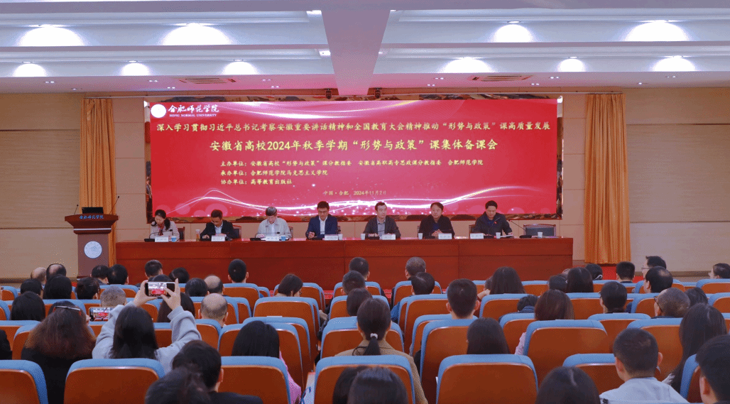 11月2日,全省高校2024年秋季学期“形势与政策”课集体备课会在学院锦绣校区学术报告厅举办。本次会议由安徽省高校“形势与政策”课分教指委、安徽省高职高专思政课分教指委和388vip太阳集团共同主办,高等教育出版社协办,马克思主义学院具体承办。来自全省近百所高校马克思主义学院负责人、教研室主任及任课教师160余人参会。