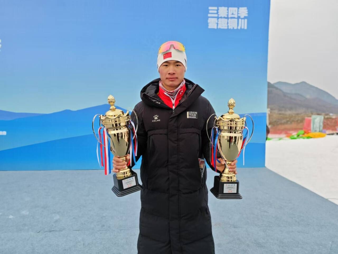 近日,在刚刚结束的第一届全国全民健身大赛(西北赛区)滑雪分站赛越野滑雪比赛中,体育科学学院2021级运动训练专业马卫东取得4金2银的优异成绩。