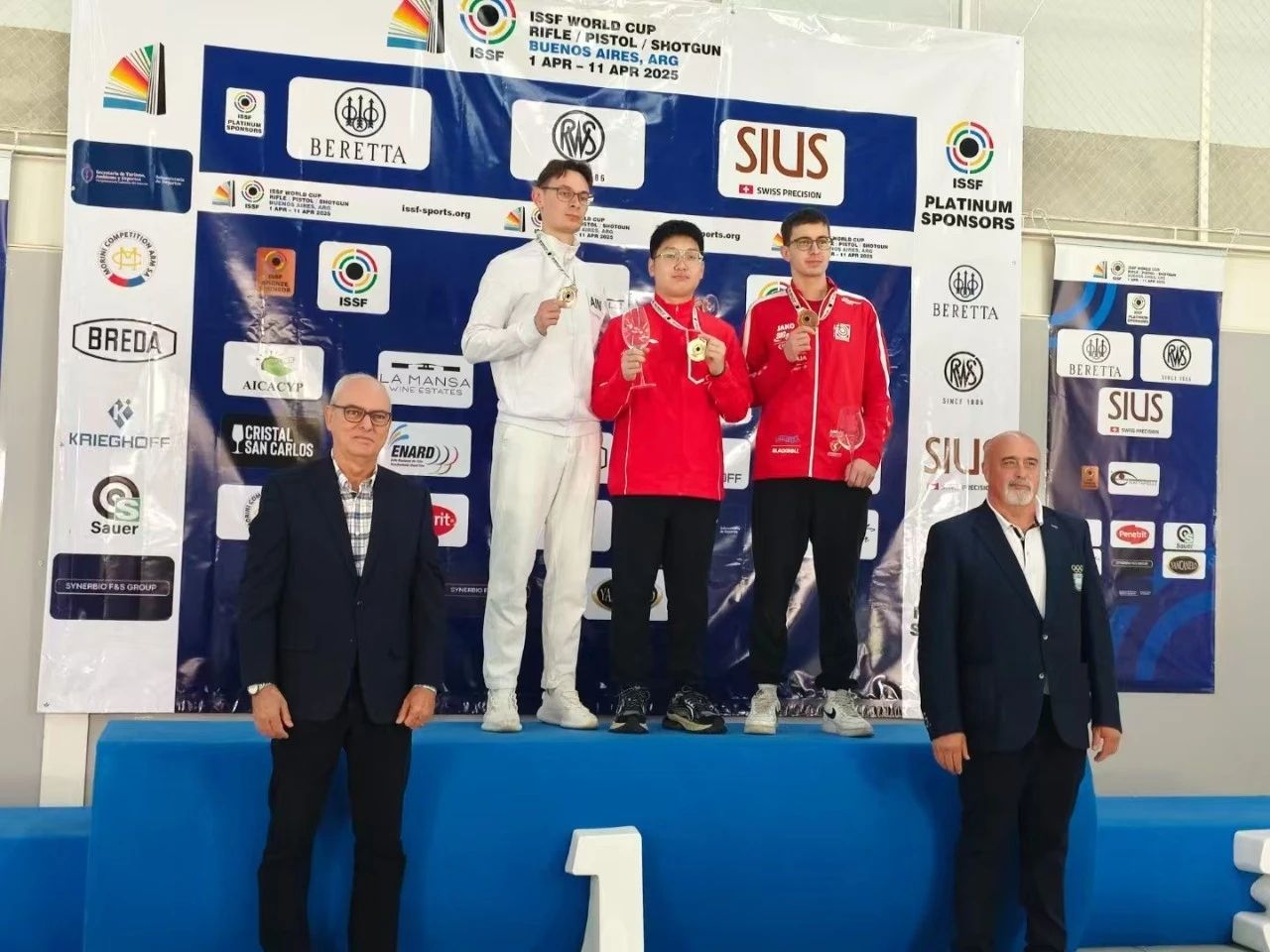 4月3日-10日,2025年国际射联世界杯阿根廷布宜诺斯艾利斯站在阿根廷举办。我校体育科学学院2021级体能训练专业学生、安徽省射击运动管理中心现役运动员胡凯在男子10米气手枪比赛中以244.7环摘得金牌。这是胡凯个人职业生涯收获的首枚世界杯金牌,也是中国步手枪射击队在2025年获得的首枚国际赛事金牌。在气手枪混合团体金牌争夺战中,胡凯与姚千寻组合不敌国家队队友,收获银牌,在本站世界杯上,收获1金1银的好成绩。