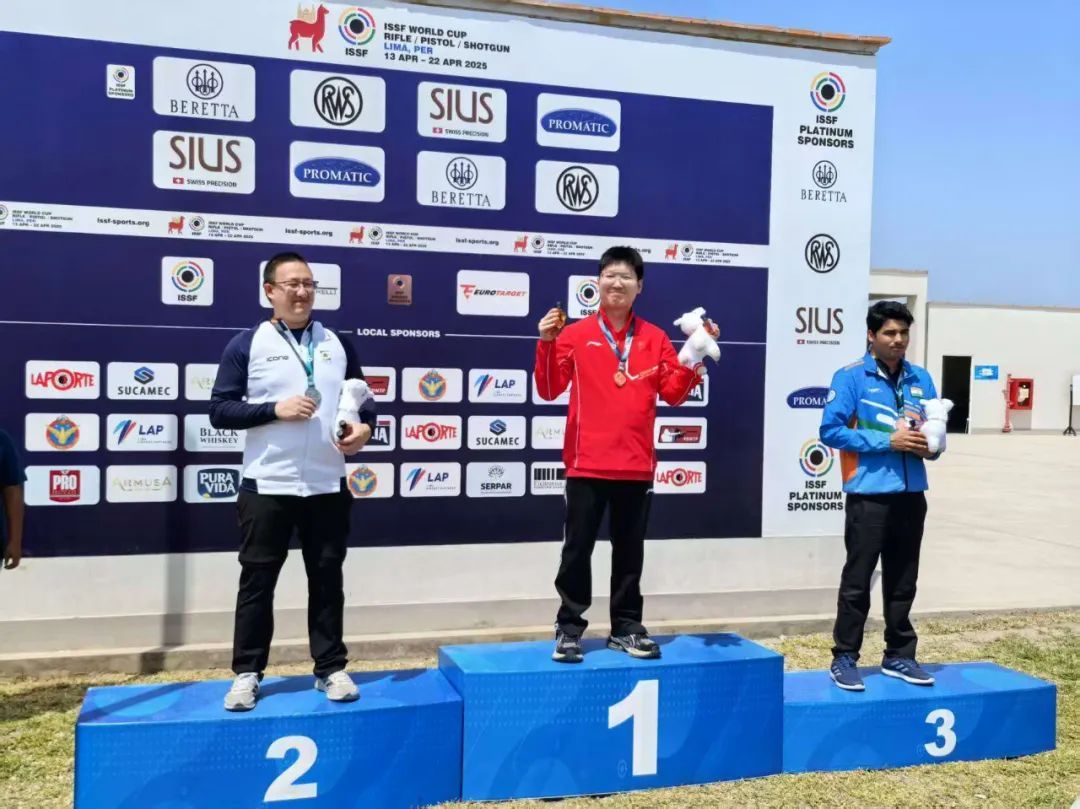 4月15日—4月22日,在2025年国际射联世界杯秘鲁利马站赛事中,我校体育科学学院2021级体能训练专业学生、安徽省射击运动管理中心现役运动员胡凯在男子10米气手枪比赛中凭借246.4环的优异成绩获得金牌,其成绩距离该项目世界纪录仅差0.1环,两周内两度问鼎世界杯分站赛冠军。此外,胡凯搭档姚千寻在10米气手枪混合团体比赛中默契配合,再添一枚银牌,连续两站赛事均登顶该项目领奖台。