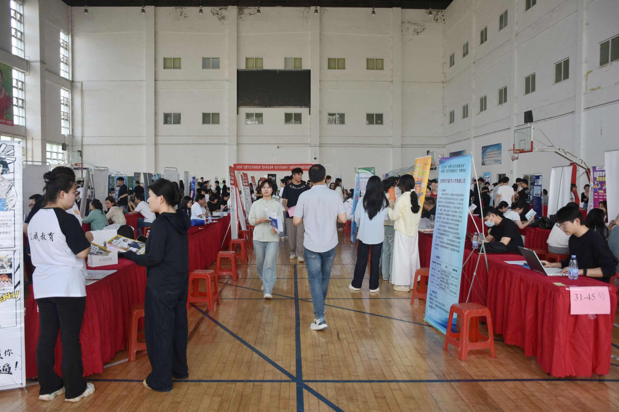 为持续深入贯彻落实党中央、国务院关于促进高校毕业生就业工作的决策部署,推进用人单位与高校毕业生实现有效对接,5月16日,由中共庐阳区委组织部(庐阳区委人才工作局)、庐阳区人力资源和社会保障局,临泉县人力资源和社会保障局联合举办,我校承办的“合肥请您来”庐阳区专场、临泉县“招才引智高校行”招聘会在锦绣校区体育馆顺利举办。院党委委员、副院长周端明,庐阳区公共就业服务中心主任王瑞刚、临泉县人才中心主任陈理到现场指导工作。