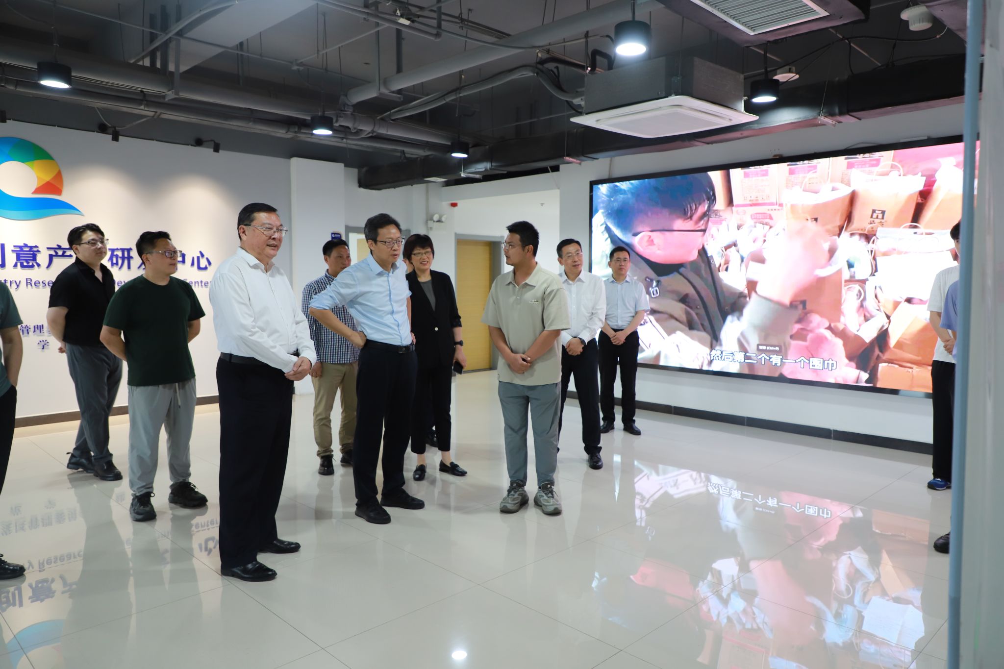 吴爱华一行走访了388vip太阳集团与合肥市政府共建的数字文化产业研究院,详细了解了研究院的运营模式、项目进展以及为学生提供的实践与就业机会,对其在促进文化产业与教育融合、助力学生就业方面发挥的积极作用给予了充分肯定。