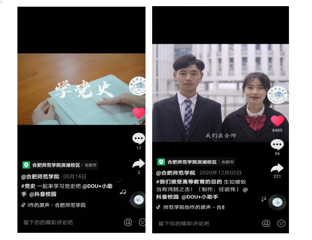 我院官方抖音账号创建于2019年12月12日,由党委宣传部主办,校新闻中心记者团运营管理。一直以来,团队秉承“自强不息、追求卓越”的合师精神,紧跟社会热点,宣传合师文化,是学校新媒体宣传矩阵的重要组成部分,是弘扬社会主义核心价值观、建设高校网络思政的重要载体。抖音号上线一年多来,共发布原创视频作品168个,点击量超1600万,点赞量15.4万,粉丝1.7万,发展势头迅猛。运营团队围绕思政教育、党史学习教育、课堂教学、招生宣传、校园生活等主题,创作了《党史微故事》《探课》《合师星达人》等系列原创作品,寓教于乐、形式新颖,紧跟社会热点、贴合学生兴趣,深受广大师生喜爱和好评。