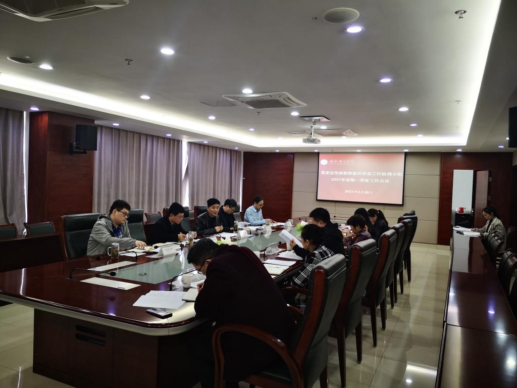 本网讯 3月26日下午,学院在行知楼2008会议室召开党委宣传思想工作和意识形态工作协调小组2021年第一季度工作会议。党委副书记吴昕春主持会议并讲话,学院党委宣传思想工作和意识形态工作协调小组相关成员单位负责人参加会议。