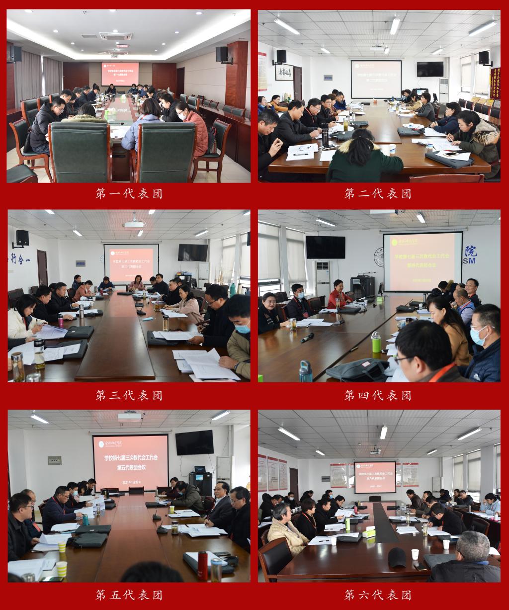 各代表团就《党政工作报告》、《“十四五”发展规划(讨论稿)》、《纪委工作报告》、《第七届三次教代会工代会工作报告》、《2020年党费收缴、使用和管理情况的报告》、《2020年预算执行情况及2021年预算编制情况的报告》、《教代会工代会提案工作报告》等进行了审议,并就《党政工作报告》、《纪委工作报告》决议草案进行了讨论。