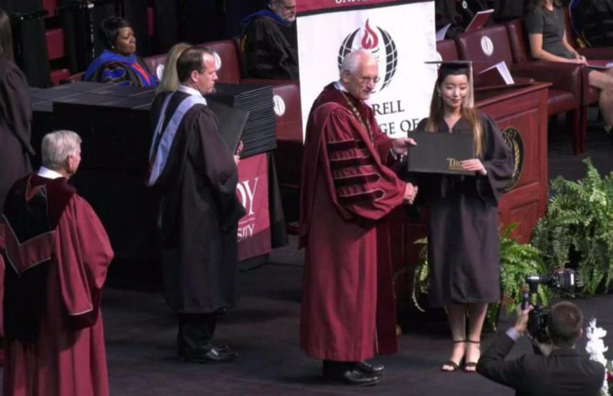 特洛伊大学校长向徐雪霏同学颁发毕业证书