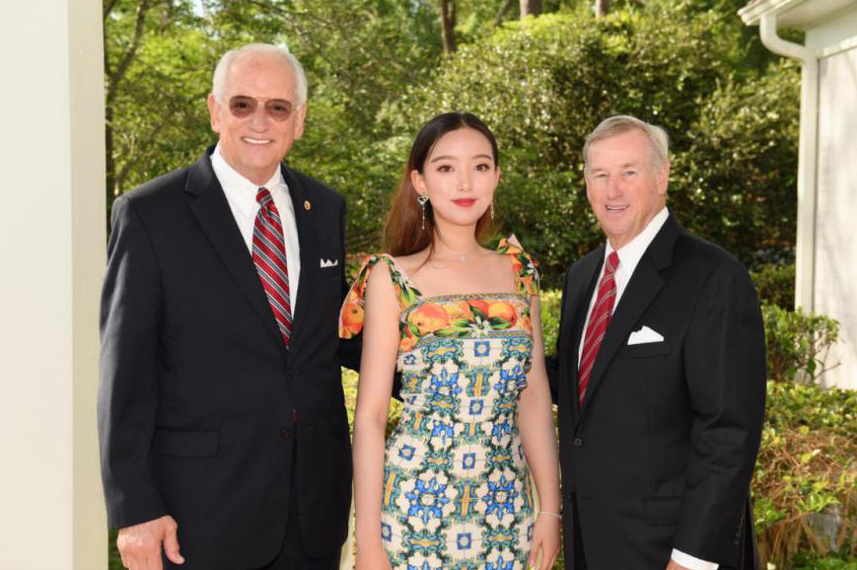 毕业典礼前徐雪霏同学在特洛伊大学校长官邸和两位校长的合影