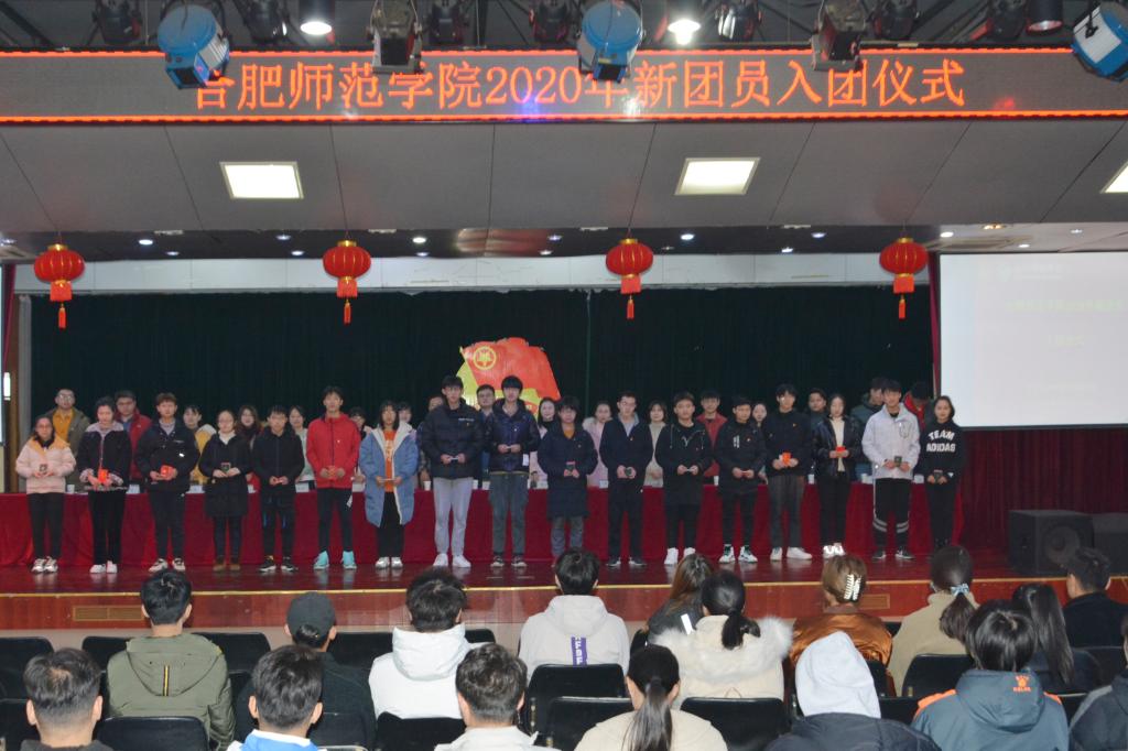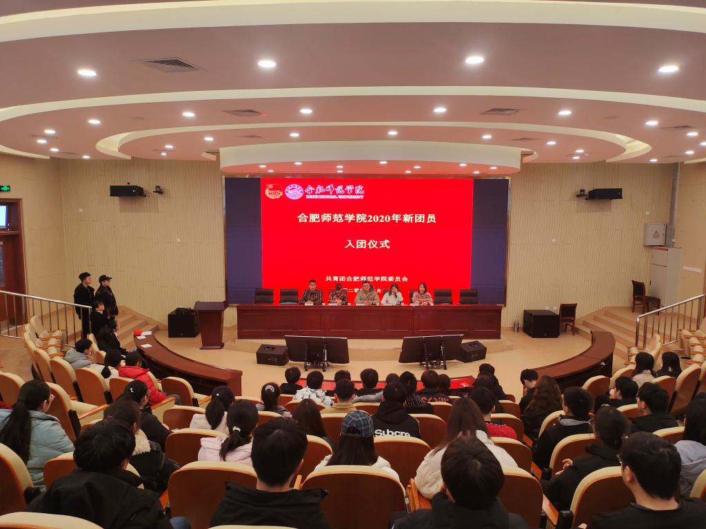 本网讯 学校2020年新团员入团仪式分别于12月19日、12月24日在滨湖校区学术报告厅、锦绣校区大学生活动中心举行,校团委全体人员,各学院团委负责人,2020年新入团的186名团员参加仪式。仪式由校团委挂职副书记戴玉佩主持。