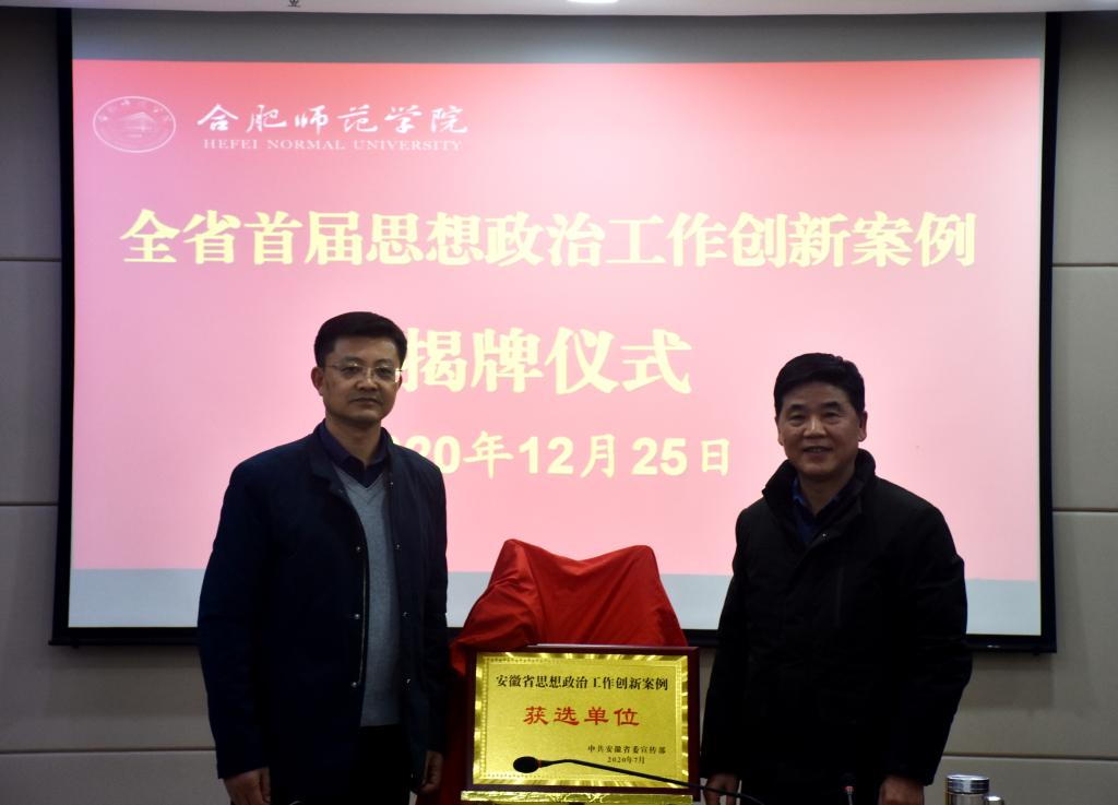 省委宣传部思想政治工作处二级主任科员阮玉华宣读了表彰文件,夏捍东与吴昕春一起共同为388vip太阳集团获评“全省首届思想政治工作创新案例”揭牌。