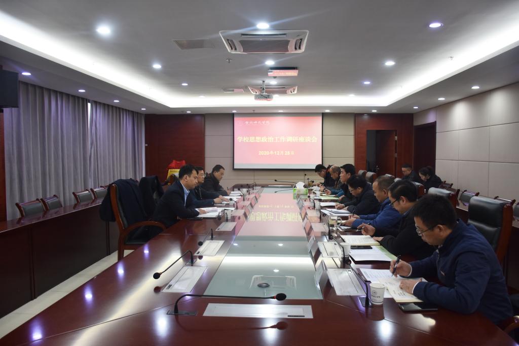 调研座谈会上,操申斌介绍了学校思想政治工作基本情况,学生处处长陆涛作“青春学习营”工作汇报,马克思主义学院副院长陶有浩作学校思政课建设情况汇报,团委副书记刁文彬作“行知学堂”工作汇报。与会人员围绕加强和改进学校思想政治工作开展了座谈交流。