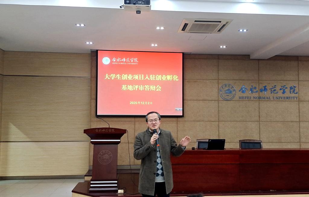 本网讯 创业与时代同行,创新携梦想齐飞。大学生创业孵化基地是提升大学生创业能力的有效载体,为进一步增强大学生创业研究和实际运作能力,帮助大学生创业项目更好更快发展,12月2日下午,学院在锦绣校区学术报告厅举办2020年大学生创业项目入驻孵化基地评审答辩会。评审答辩会邀请了入选教育部万名优秀创新创业导师人才库的创业导师和安徽省“启明星”就业指导专家,来自安徽正德人力资源咨询有限公司董事长管政、安徽佳通轮胎有限公司总经理助理宋敬、合肥淮才教育咨询有限公司董事长匡龙云担任评委。