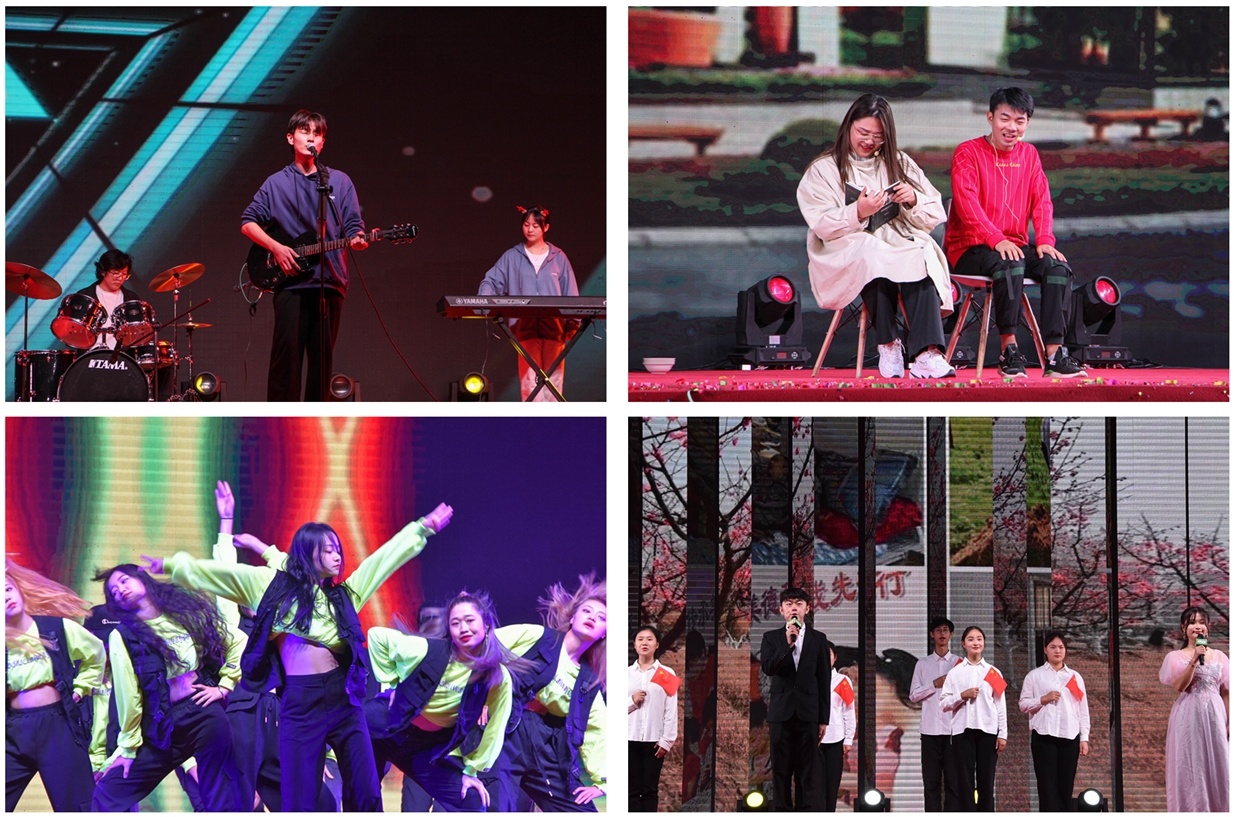 弦舞吉他社带来的歌曲串烧以高昂的旋律拉开晚会序幕。朗诵《合师颂》诵读出合师六十五载辉煌岁月。歌曲《不忘初心》婉转动听,以优美的旋律表达了合师学子青春心向党的人生追求。话剧《军训》生动展示了新生在军训时的别样体验。舞蹈《重生》在光影的渲染下,给观众带来了一场视听盛宴,并将晚会推向高潮。歌曲《合师校园》展现了合师学子朝气蓬勃、青春洋溢的精神风貌,优美的原创歌曲令人身心荡漾,沉醉其中。舞蹈《集英之旅》将舞蹈、舞台剧元素与动漫相结合,收获阵阵掌声。小品《我的大学生活》将大学宿舍里的同学关系展现得惟妙惟肖,赢得了场下观众的阵阵掌声。走秀《缪斯之路》展现了同学们朝气蓬勃、青春洋溢的健康形象。歌曲《共和国之恋》歌声铿锵有力,充满力量,唱出了合师学子对祖国母亲的情深意切。舞蹈《疫.忆》用艺术形式再现了疫情期间那些动人的场景,生动展现了中国人民众志成城、抗击疫情的信念。歌曲《风吹麦浪》歌声悠扬,以柔和的旋律生动展现出如今祥和繁荣的中国。整场晚会精彩不断,高潮迭起,赢得台下阵阵掌声。滨湖校区辅导员老师的合唱《复兴的力量》《388vip太阳集团校歌》真情流露,饱含了对合师学子们的殷切期望和对祖国、对合师的热爱,为本场晚会划上了圆满的句号。