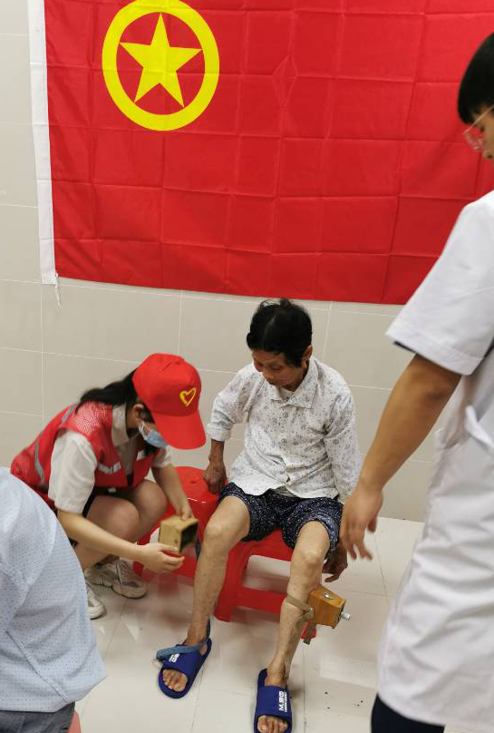 2019级音乐学院的邓悦同样是医疗志愿组的一名成员,她负责帮助安置点的中医老师做艾灸辅助工作。“做医疗志愿者一定要耐心细致,艾灸时间过短或过长都没有效果,甚至有副作用,所以一定要万分小心。”经过几天的志愿服务,邓悦对此已颇有心得。“‘奶奶您感觉怎么样?温度合适吗?’ ‘合适,舒服着呢。’”这样的对话邓悦一天要问许多遍;而安置点的老奶奶们亦是对她赞不绝口:“为了怕艾灸烫到我,小姑娘每次都在自己手上先试,帮在我腿上后也用手护着,严格卡着时间,从来没出错过。太贴心了!”温柔细心的邓悦是安置点老奶奶心目中的小太阳。