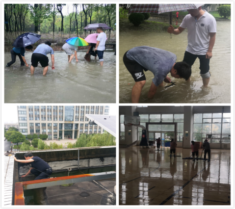 冲锋在前,基层党组织用坚守筑牢堡垒。受暴雨影响,校内先后出现道路严重积水、公寓雨水倒灌、楼顶水管爆裂、校园围墙倒塌等情况,后勤党总支积极落实上级和学院党委部署和要求,全力做好防汛排水抢修工作,后勤处党员领导干部以高度的政治责任感和使命感,把防汛救灾作为当前工作的重中之重,冒雨战斗在汛情一线,清理疏通校园道路水井、排水沟和管道,及时进行排水、抢修工作,处理地下车库、体育馆、图书馆楼顶等区域积水、漏水问题,维修抢修校园配电房等各项设施设备,及时排查线路故障问题。后勤所有党员执行24小时轮流不间断巡查和“零报告”机制,遇到重大险情及时处理、第一时间上报,最大限度地排除安全隐患。