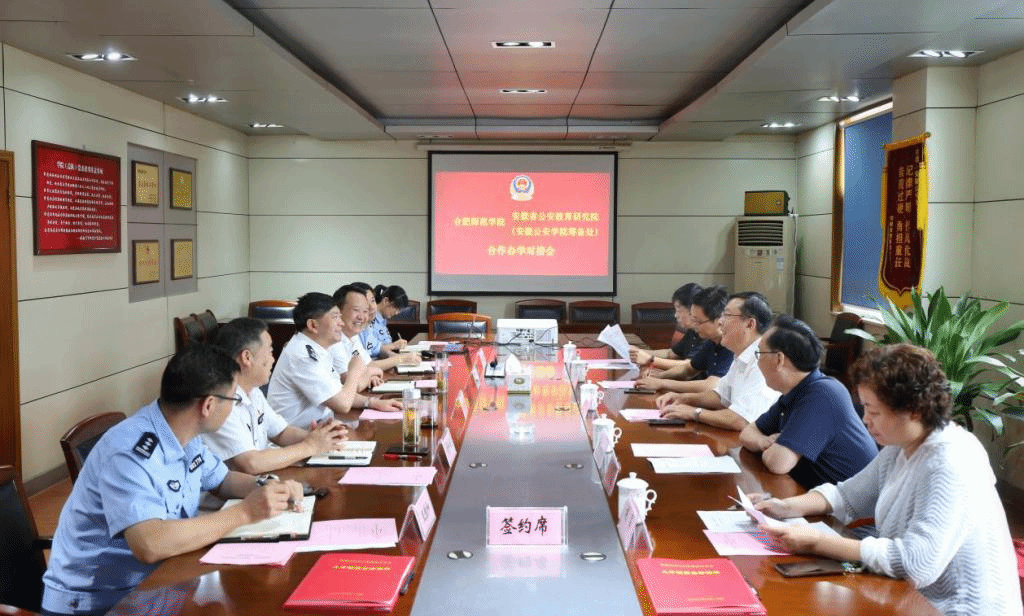 双方还就今年4月签订框架协议以来,各自发展状况和进一步合作进行了深入交流。副院长姚本先和安徽省公安教育研究院(安徽公安学院筹备处)舒和润院长作为双方代表共同签署了《数据科学与大数据技术专业人才培养合作协议》。