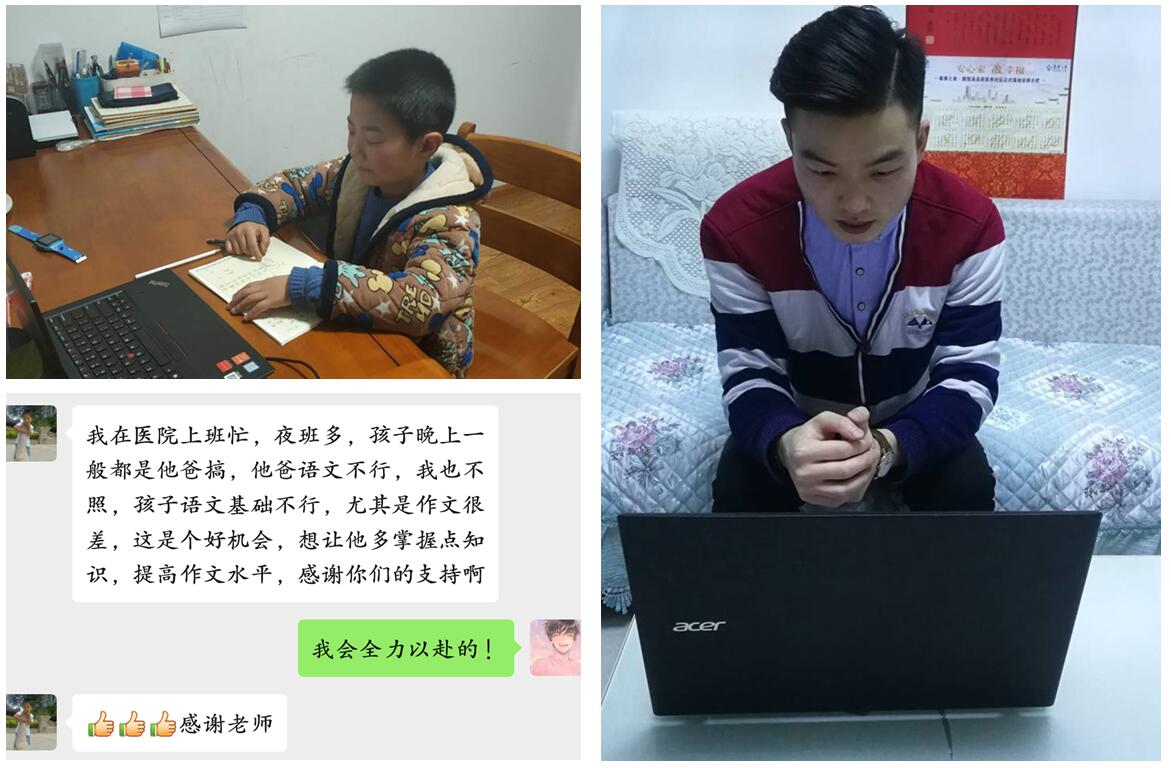 而后的教学活动中,徐嵩崴和钱坤建立了深厚的友谊,师生默契让每一节课都充满着和谐的气氛。徐嵩崴也给了钱坤满满的感动。“平时我和他在一节课结束的时候,我们之间的对话一般都是今天的课到这里,我们下次课见,然后小朋友会回答说老师再见,就这样很简单。”而有一天钱坤又和往常一样认真授完课后,小朋友突然在后面加了一句“老师辛苦了”,虽然这只是简单的五个字,但却让钱坤感到十分暖心。“他看得到我对他的付出,他很喜欢我这个小老师。”“我知道他的妈妈是护士,在第一次教学时阿姨也对我指出了小朋友在学习上的不足之处。阿姨因为这次疫情而日夜加班,没时间管小朋友的学习,我更加希望能为她分忧。”