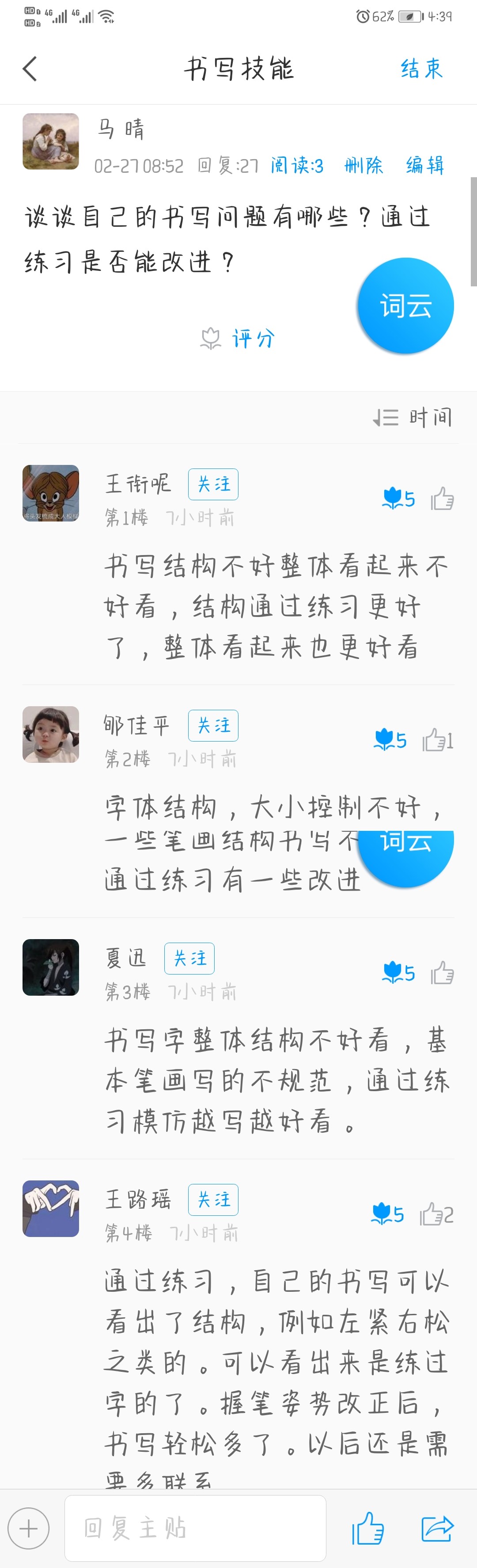 场景三:《书写技能》课程是师范生必修的技能课程,更需要及时与学生沟通。以往的课程我可以当堂示范,但是网络授课上光讲书写基本知识远远不够,所以必须录制书写教学视频。我就准备好设备,将手机固定在一个台灯顶上,把摄像头对准纸面,用另一个台灯打光,边写边讲边录课。为了学生有效学习,有的视频录了不下五遍。学生的反响也令我很欣慰,一句句的“老师辛苦了”,“老师我的字终于有进步了”就是学生对我认可和回报。