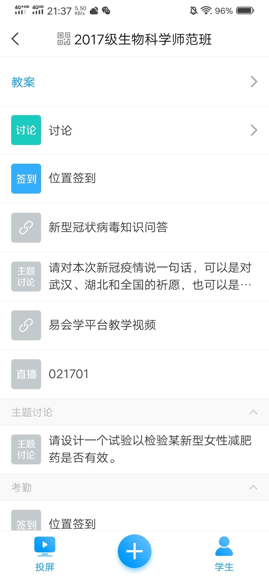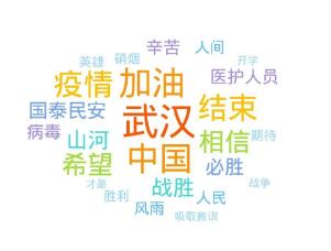 为此,我在教学设计中加入了两个教学活动。一是“我的祈福语”, 请每一位同学用一句话说出对武汉、湖北、中国的祈福语,再通过“词云”功能将全班同学的祝福语可视化展现出来,使全班同学产生情感共鸣。通过这个活动,使学生在切身感受的基础上深刻体会了“敬畏自然”的必要性,同时也增强了他们的公共卫生意识。