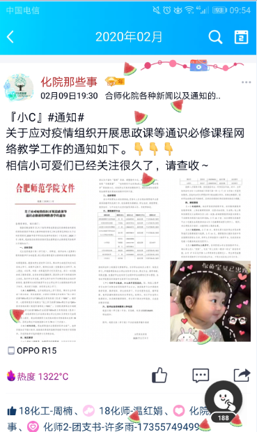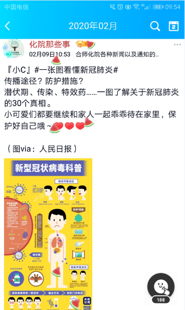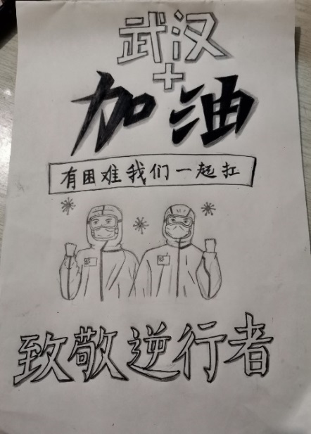 一位化院同学说:“我们深爱的这片土地,我们深信一定会迎来春暖花开的那一天。在这个特殊的时期,我们怀有必胜的信念。这份信心,源自一线的医护工作者,源自身边的志愿者,源自默默奉献者,更源自我们强大的祖国。我们无法奔赴一线,我们无法直面疫情,我们力量还有一点微弱,但我们有飞扬的青春、有坚定的信仰、有无畏的冲劲。我们拿起了手中的笔,将我们的理解告诉你我他。武汉,我们和你在一起。逆行者,你们是时代最美最可爱、最可敬的人。”