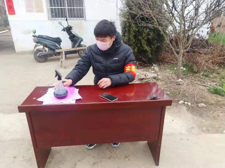 “坚定初心,守好每一道关口”,2018级制药工程班的苏龙飞在蚌埠市五河县大新镇府台村村口的疫情防卫宣传站里板正地坐着,负责防卫村口,禁止外来人员入内。他一丝不苟的工作态度、耐心细致的开导,拉近了人与人之间的距离,守护一方,传递温暖。