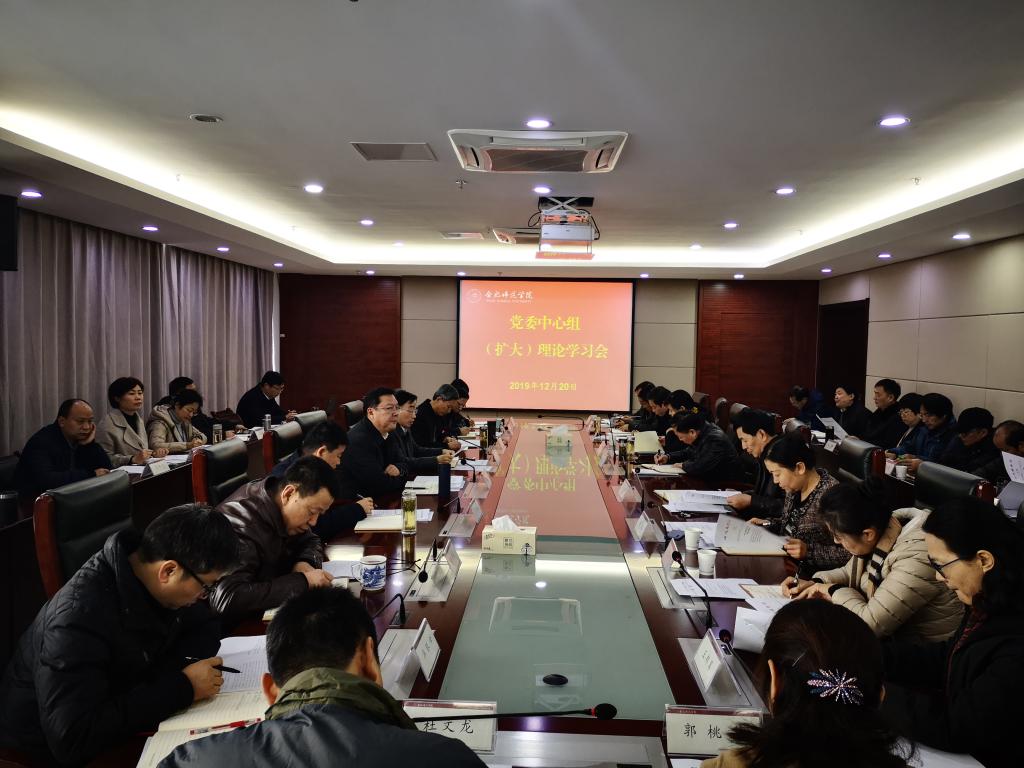 本网讯 12月20日上午,党委理论学习中心组在锦绣校区行知楼第二会议室召开扩大学习会,集中传达学习中央、省委经济工作会议和省委十届十次全会精神,谋划学校2020年重点工作。党委书记徐成钢主持会议。党委理论学习中心组成员出席会议,各党总支、直属党支部书记,各学院院长、各部门主要负责人参加会议。