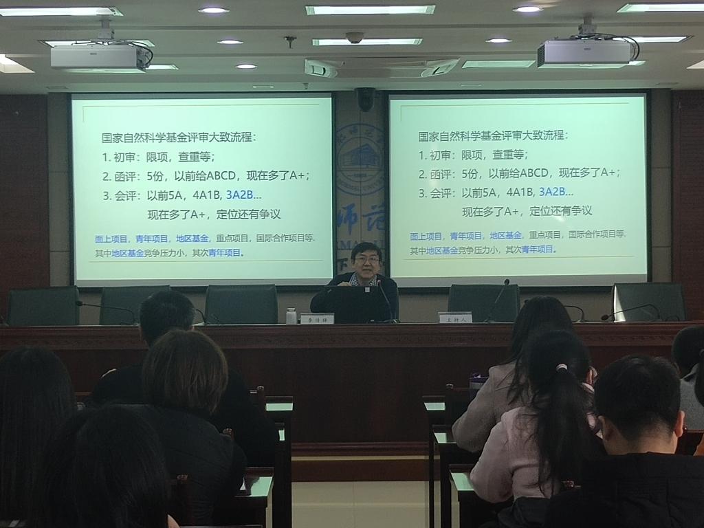 辅导报告会上,两位专家从国家基金项目申报书的类别、选题和撰写过程中常见的问题谈起,尤其结合自身多年申报、承担和评审国家基金项目的经历和经验,重点讲解了国家基金项目申报材料的撰写要点、注意事项和容易出现的问题等。