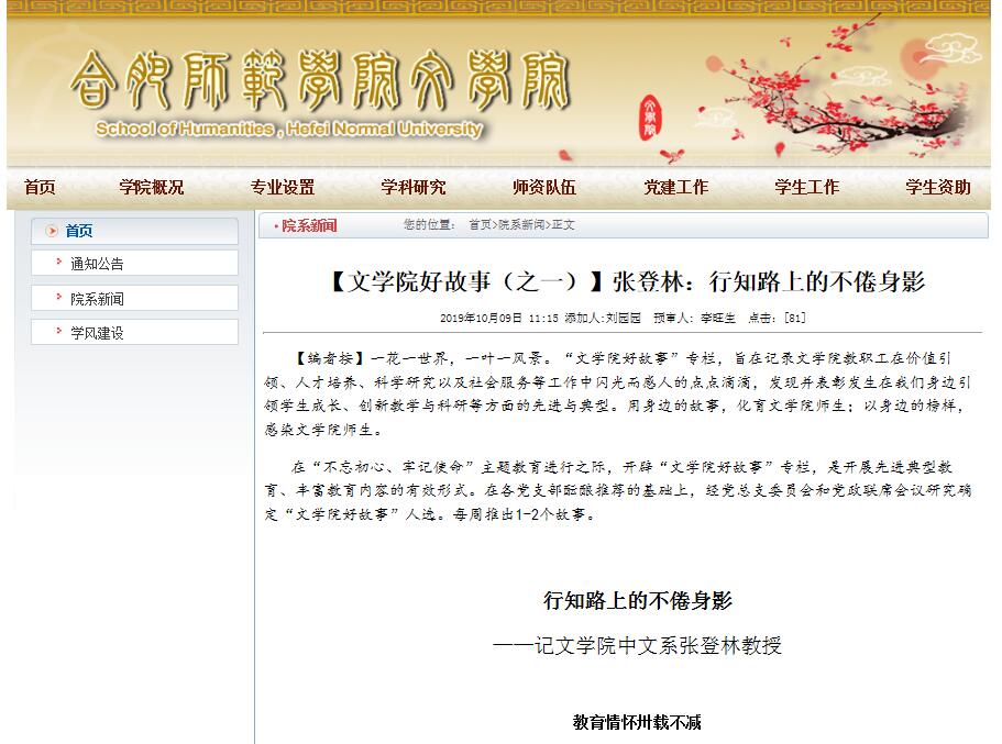 推好故事。文学院在主题教育期间,由基层单位推荐学院党政审核,每周推出一、二个先进典型人选的好故事,并学院网站设“文学院好故事”专栏,宣传展现学院师生员工在价值引领、人才培养、科学研究以及社会服务等工作中闪光而感人的点点滴滴,在引领学生成长、创新教学与科研等方面好的故事,用身边人讲身边事、用身边事教育身边人。