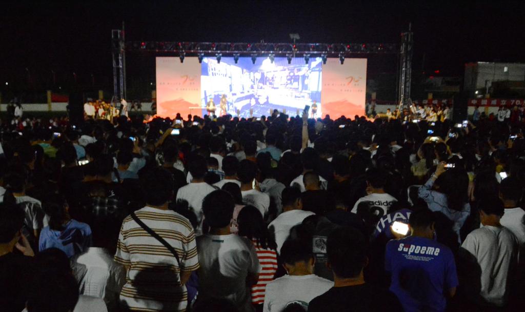 本网讯 9月25日晚,由院团委主办,学生社团联合会承办的庆祝新中国成立70周年暨2019年迎新生文艺晚会于滨湖校区体育场隆重举行。学生工作处、教务处、保卫处、后勤处、滨湖校区综合管理办公室、院团委等单位人员、2019级新生辅导员、近3000名2019级新同学到场观看晚会。