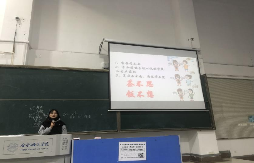 五位主讲教师分别为大家做了不同主题的报告。王占军围绕“心态,状态,稳态,计划,谋划”等几个方面对学生进行初试考前指导。陈金武强调复试除了考察学生的专业素养外,更多地关注学生的综合素质。他从自我介绍,语言组织,内容呈现等方面为同学们提供了面试小技巧并就复试基本流程进行了细致的介绍。方雪根据了解以往学生的考研经历,对各学科如何学习、看什么版本资料等提供了宝贵建议;程诚结合自身考研经历分享排解压力的方式方法并提出可行性建议;杨星星用自身的经历针对考研复习计划,心态等方面给同学们做了具体指导。随后,同学们对在复习过程中遇到的问题和困惑相继提问,老师们一一悉心解答。