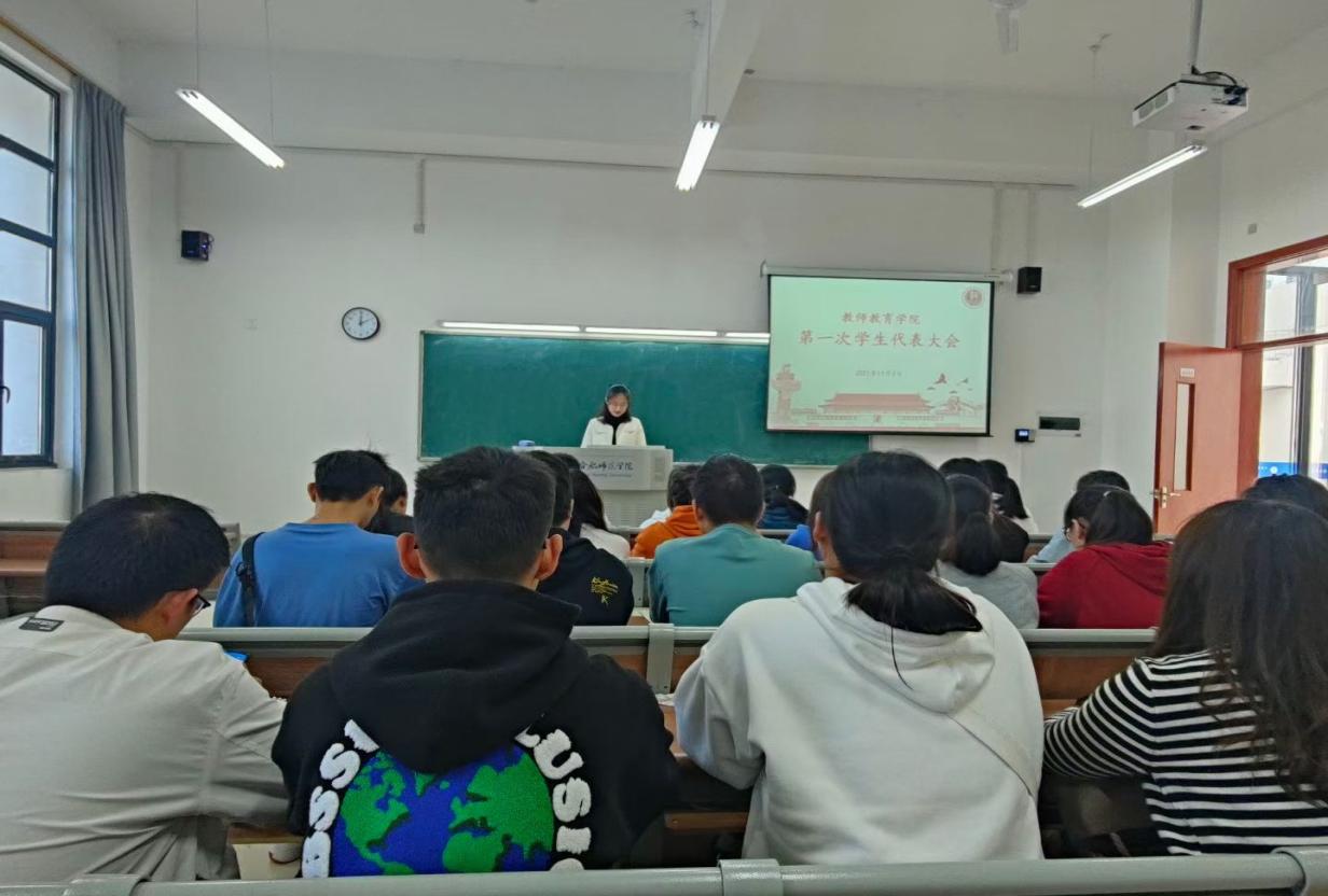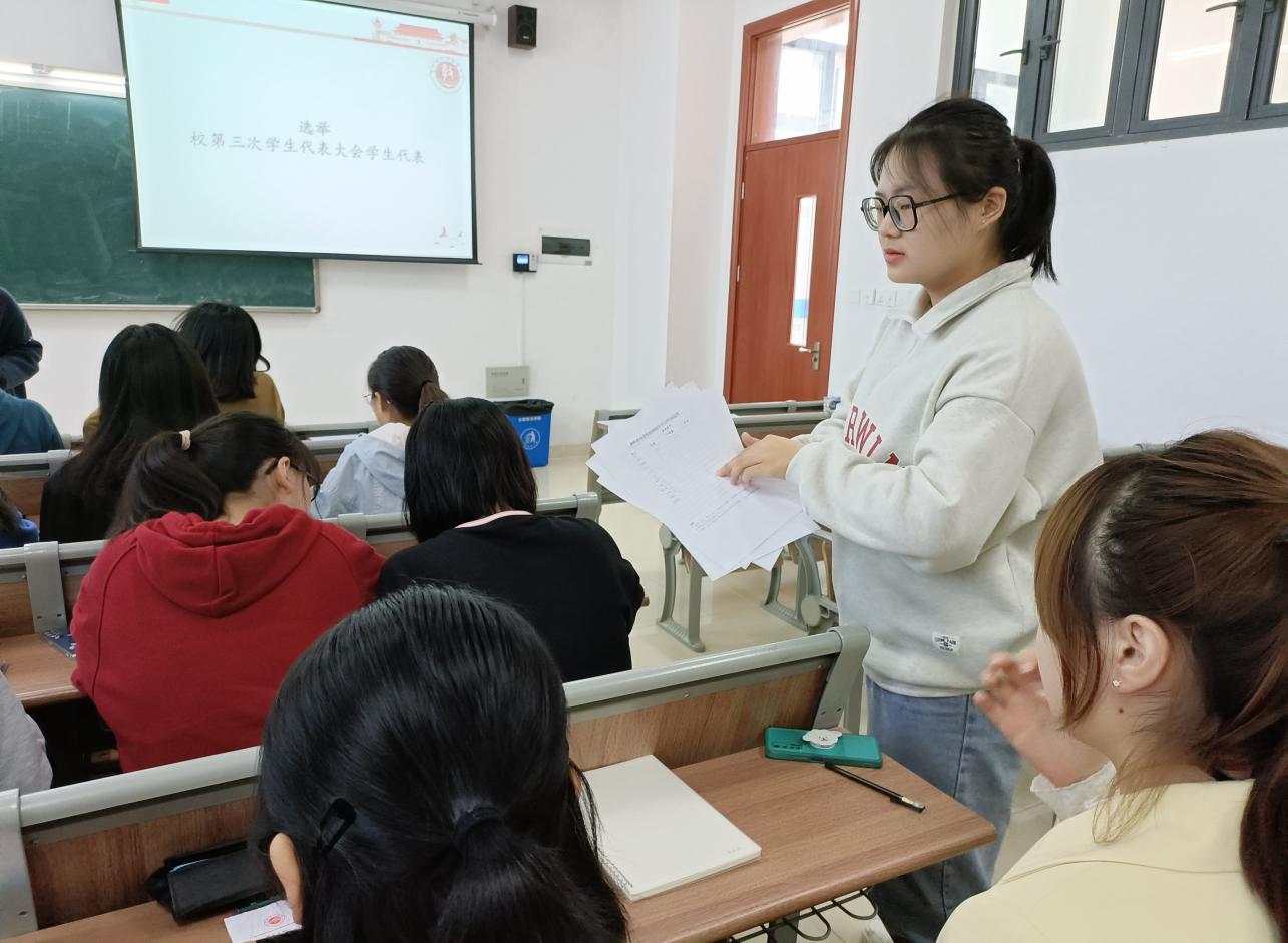 本网讯 根据《关于筹备召开388vip太阳集团第三次学生代表大会的通知》精神,学院于11月3日在滨湖校区博学楼A102教室组织召开了教师教育学院第一次学生代表大会。本次大会由学生会主席王雨欣主持,各班级学生代表积极参会。大会全面总结了过去一年的学生会工作,并选举产生了新一届主席团。
