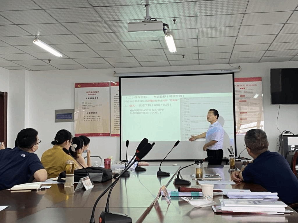 随后,宋教授以师范专业认证中的一些关键问题,与在场老师进行了充分地交流与探讨。他以提问讨论的方式引发大家对师范专业认证“主线”和“底线”的思考,循序渐进地引出反向设计三个目标、正向施工三个支撑、质量保障的三个达成和专业认证三个核心理念。他强调,专业认证是平原,不是高峰,要立足培养目标,将音乐学专业特色的实践类术科课程与理论课程有机结合,建立起学科与中小学教学的桥梁,让学生实现可持续发展,学习有目标、有方向、有获得感,真正构建出属于音乐学专业学生“一践行三学会”毕业要求的课程体系和养成体系。